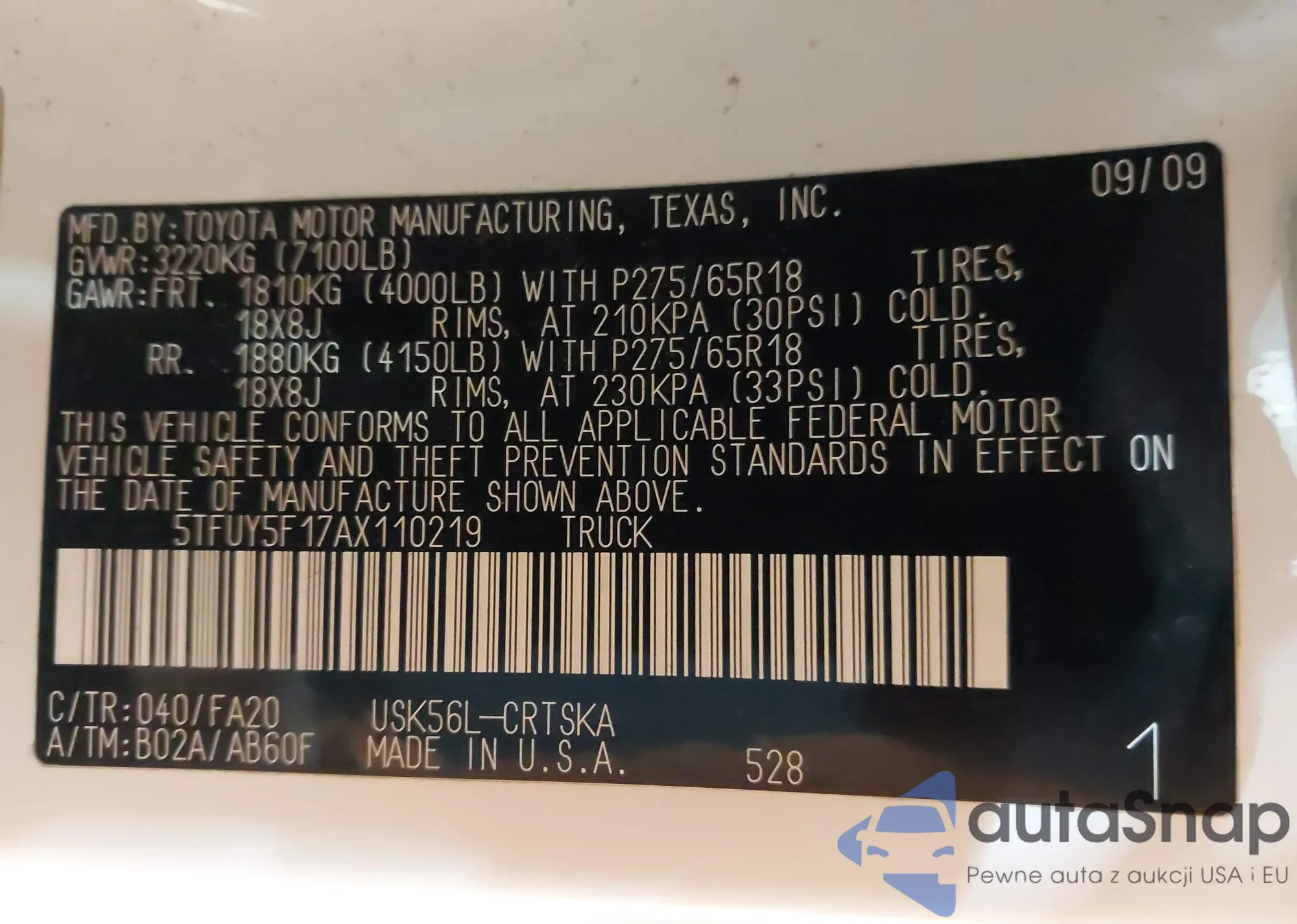 LOT: 43605073 VIN: 5NPEB4AC9DH571270