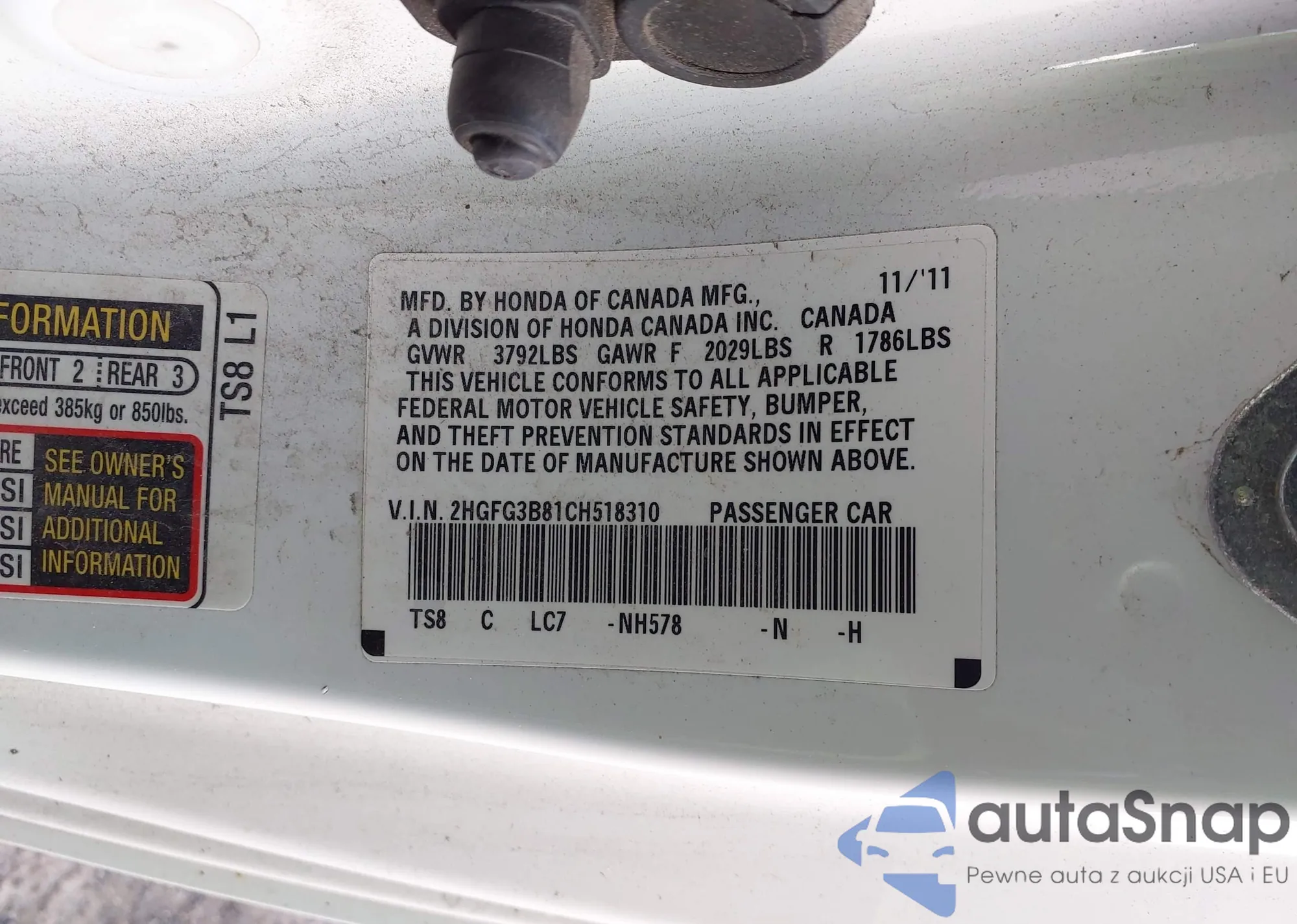 • VIN 2HGFG3B81CH518310