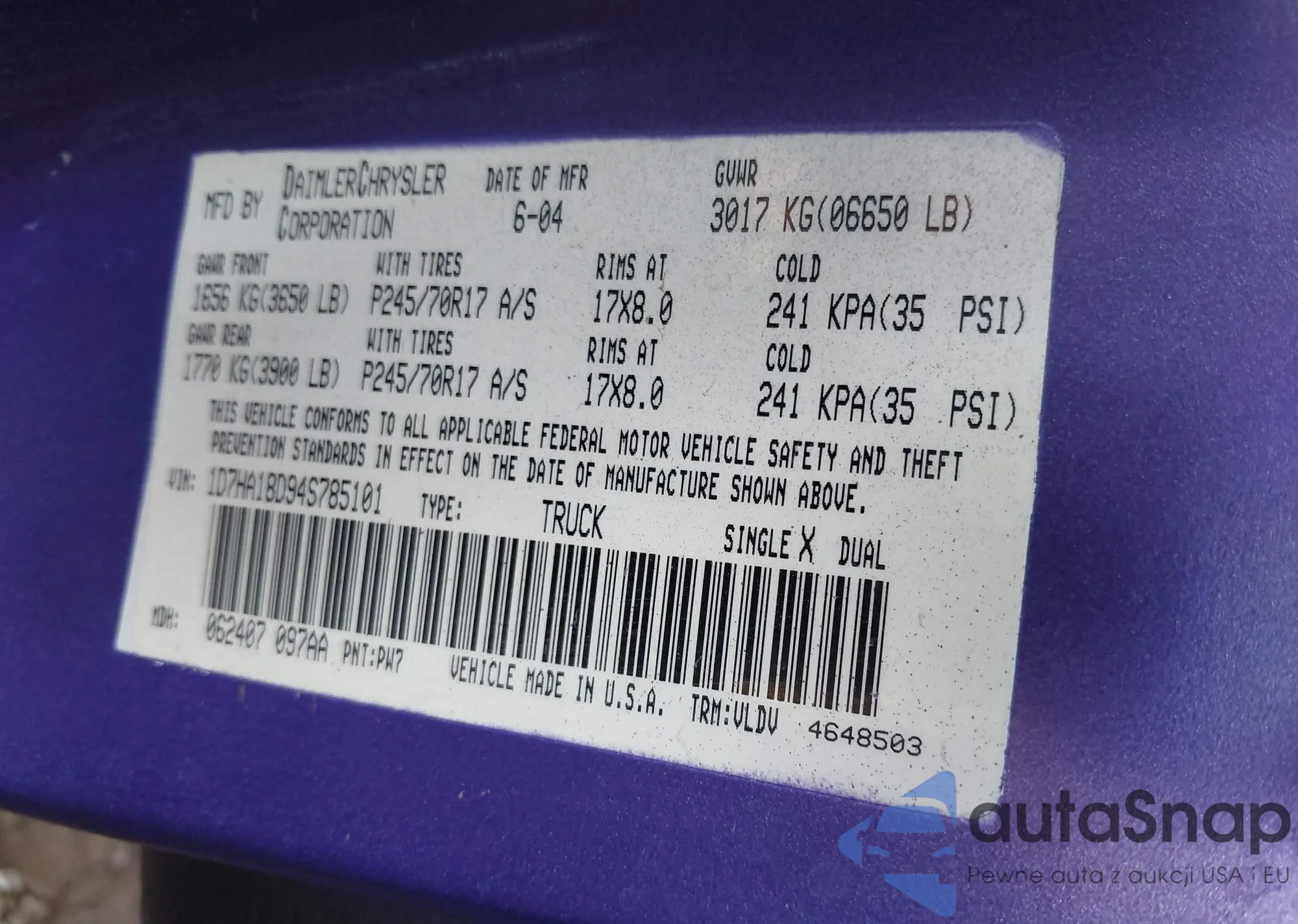 • VIN 1D7HA18D94S785101