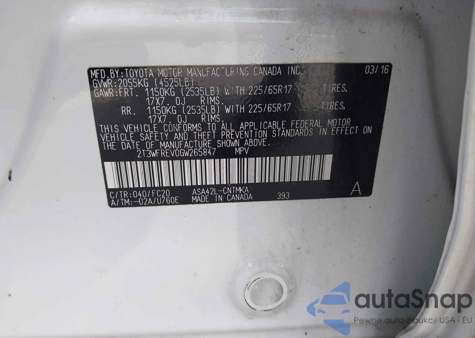 • VIN 2T3P1RFVXSW534964