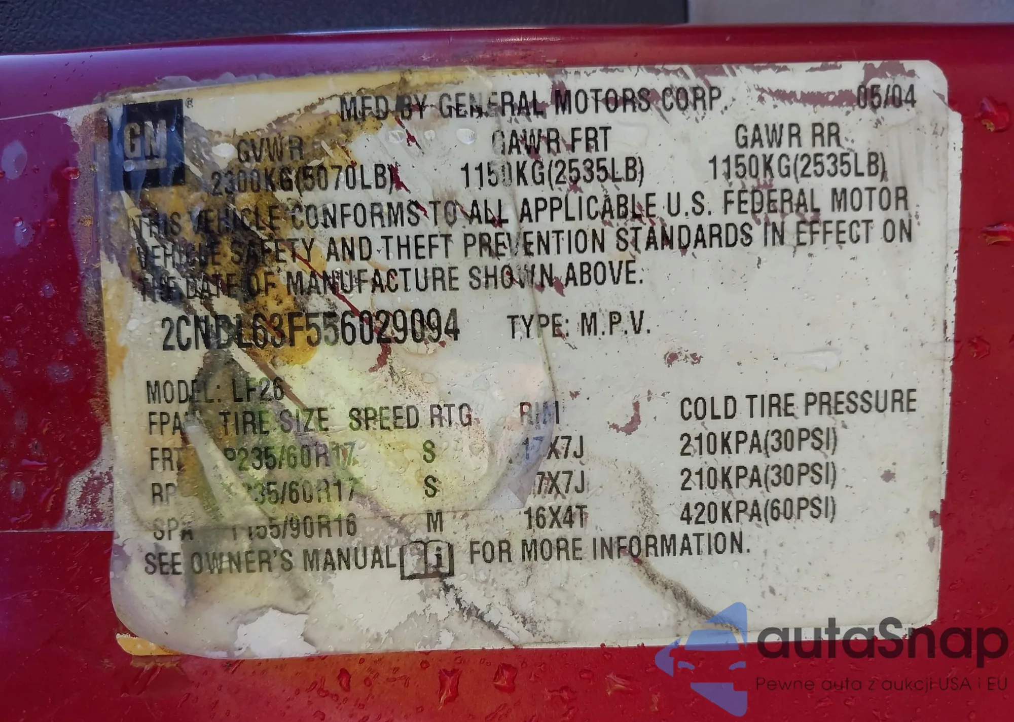 • VIN 2CNDL63F556029094