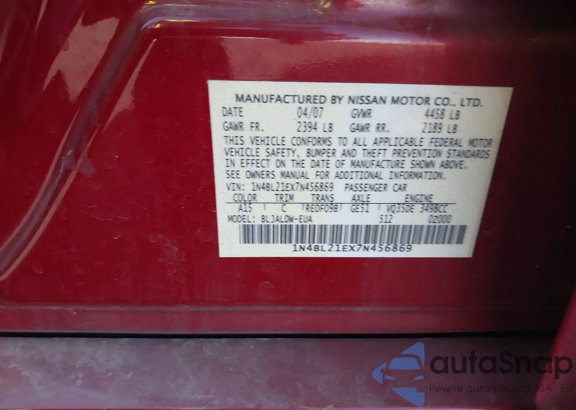 LOT: 43515666 VIN: 1N4BL21EX7N456869