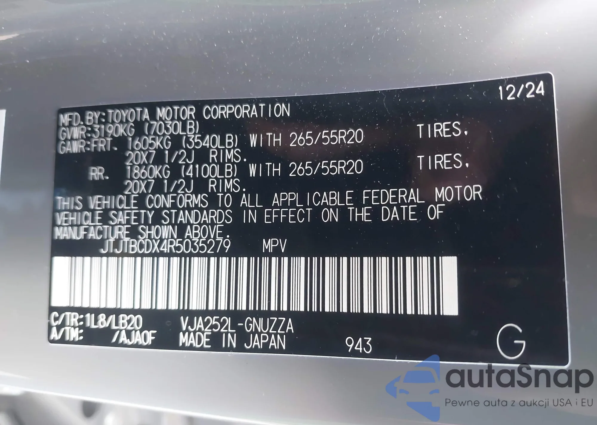 LOT: 43297381 VIN: JTJHZKEAXM2019684