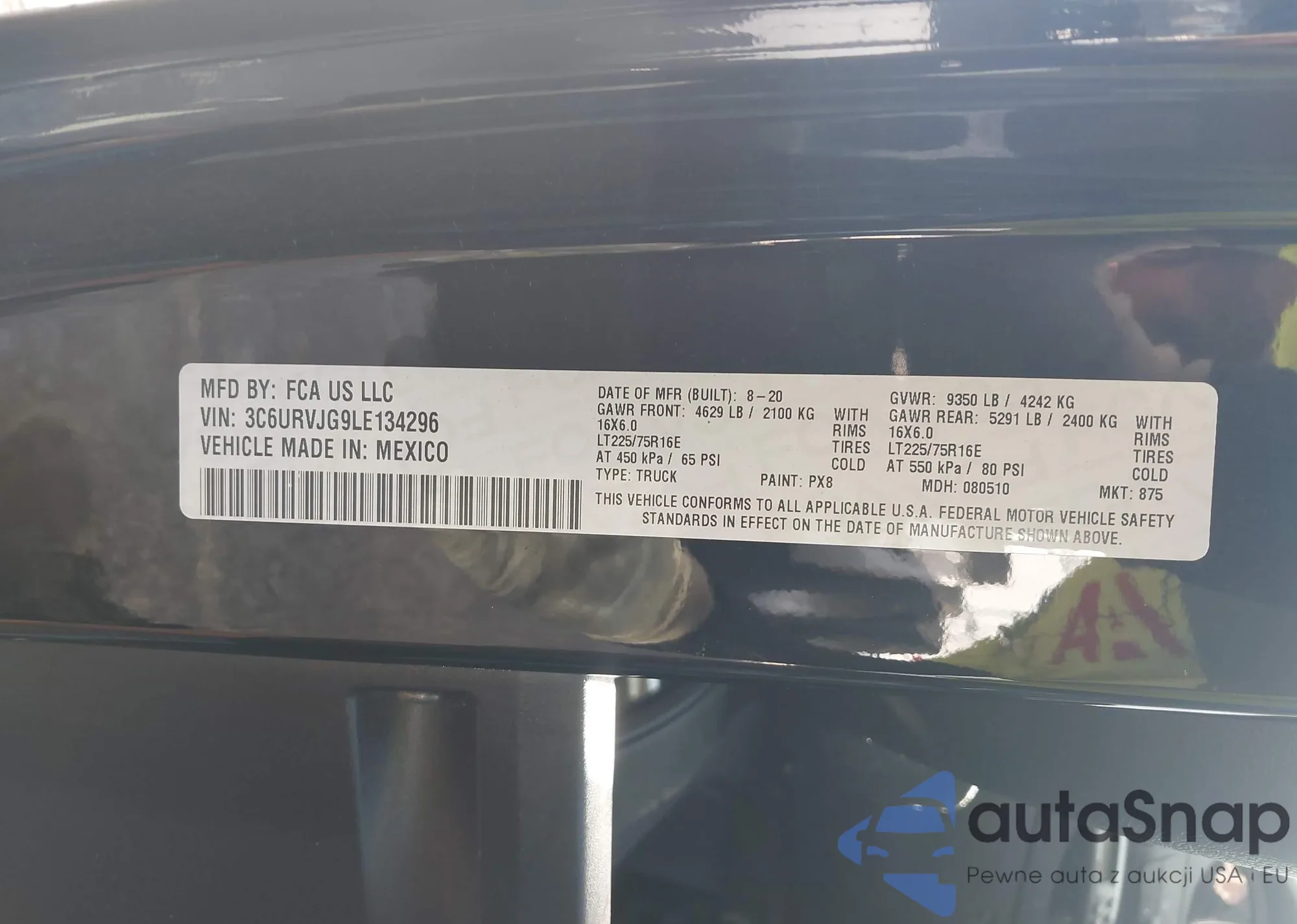 • VIN 3C6URVJG9LE134296