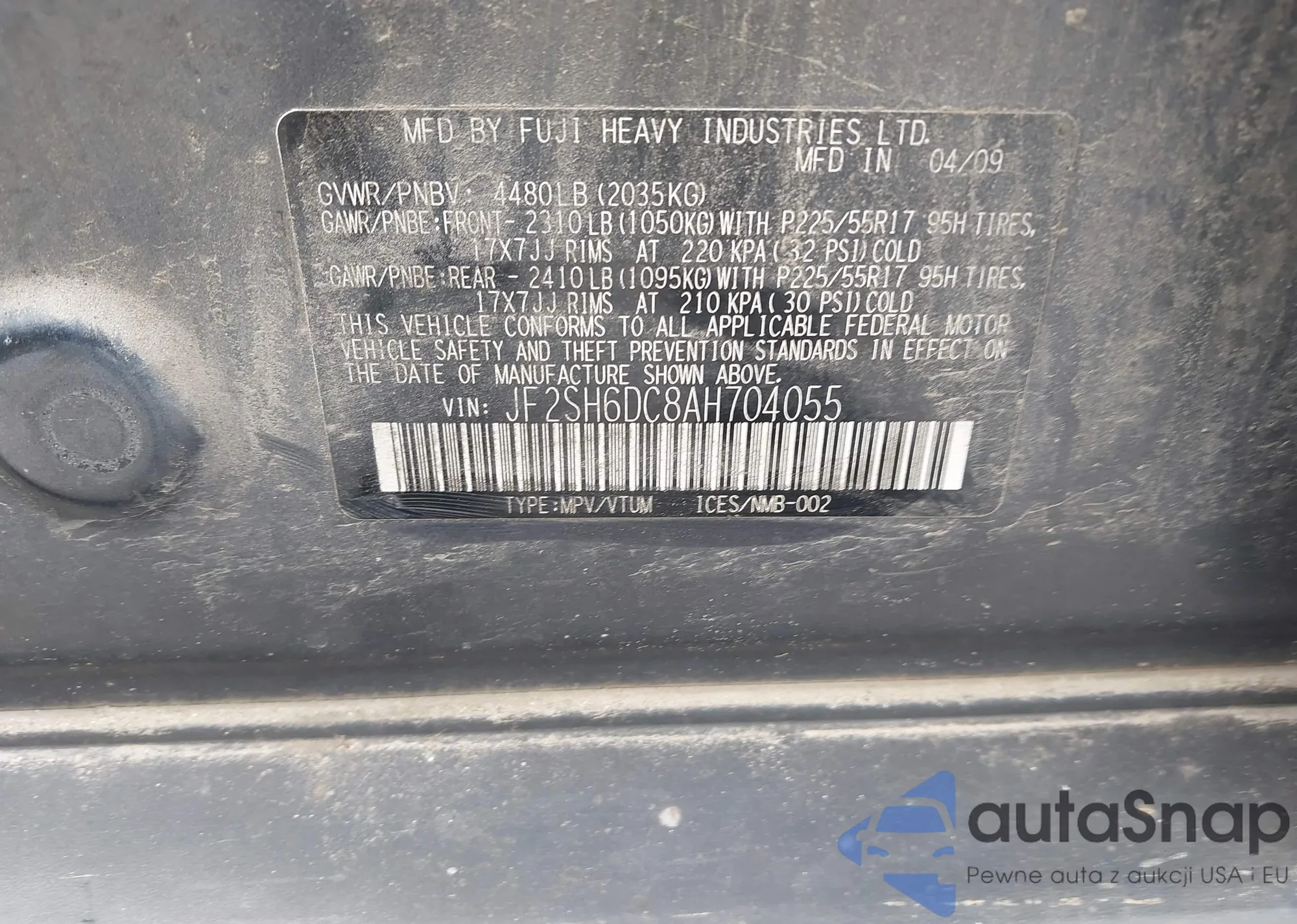 • VIN JF2SH6DC8AH704055