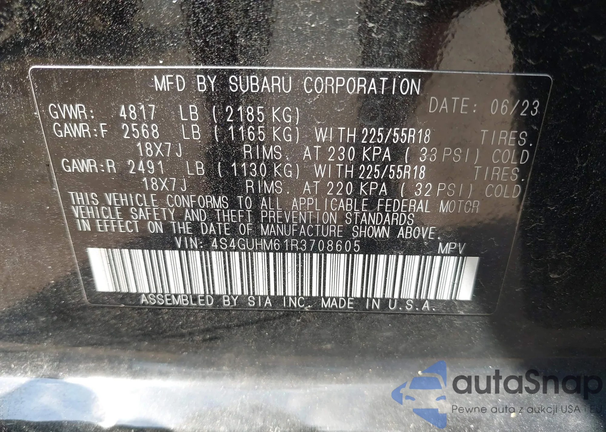 LOT: 43394167 VIN: JF2SH6DC8AH704055