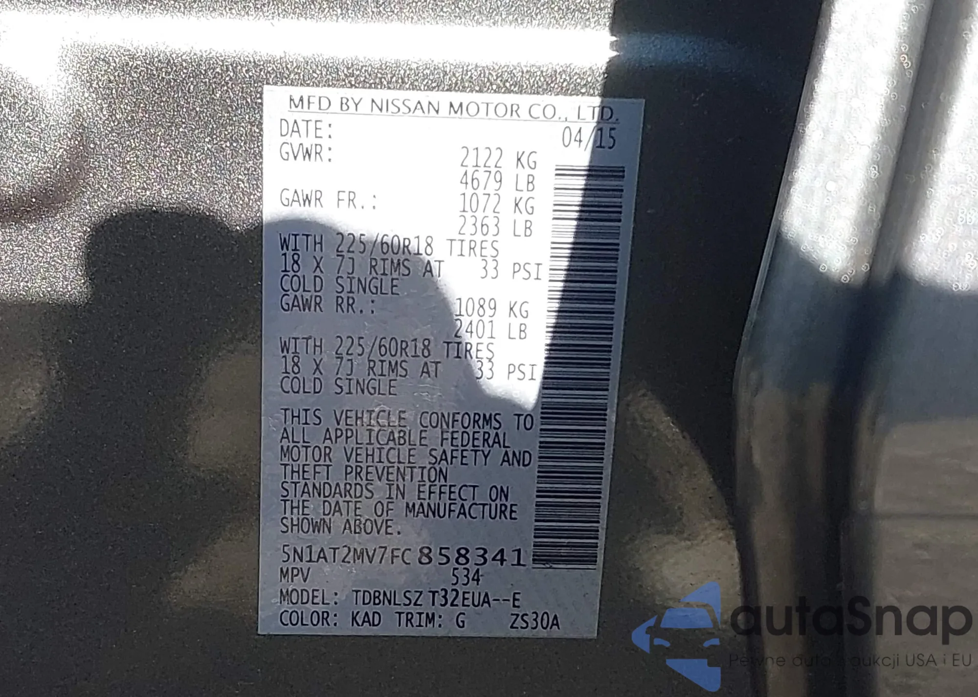 • VIN 5N1AT2MV7FC858341