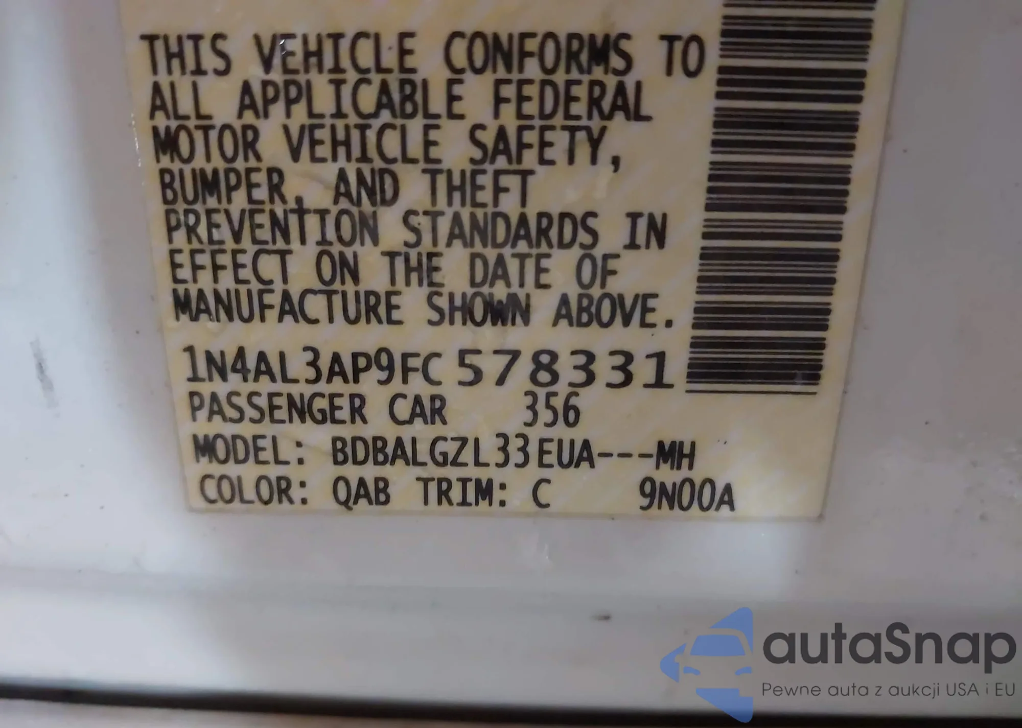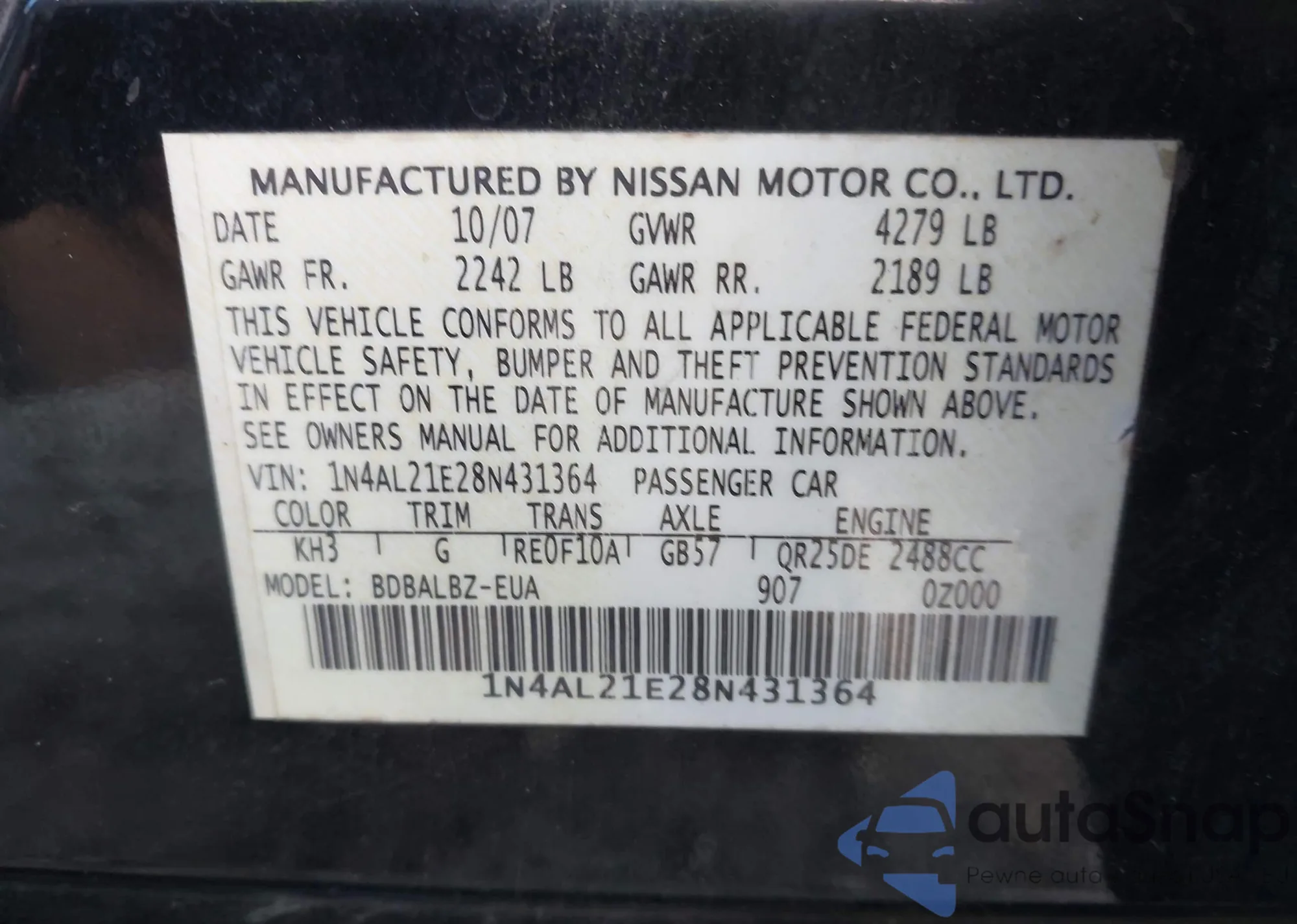 LOT: 43466315 VIN: 1N4AL21E28N431364
