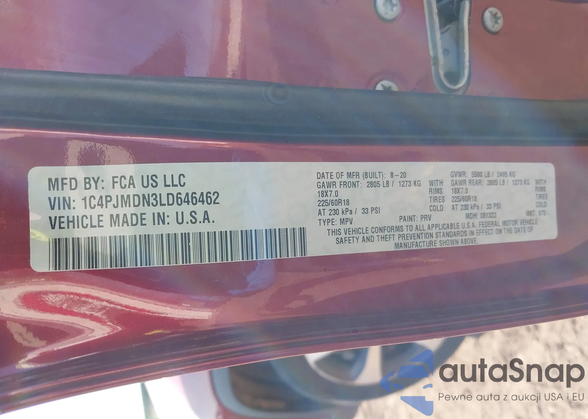 • VIN WBA8A3C53JA488698