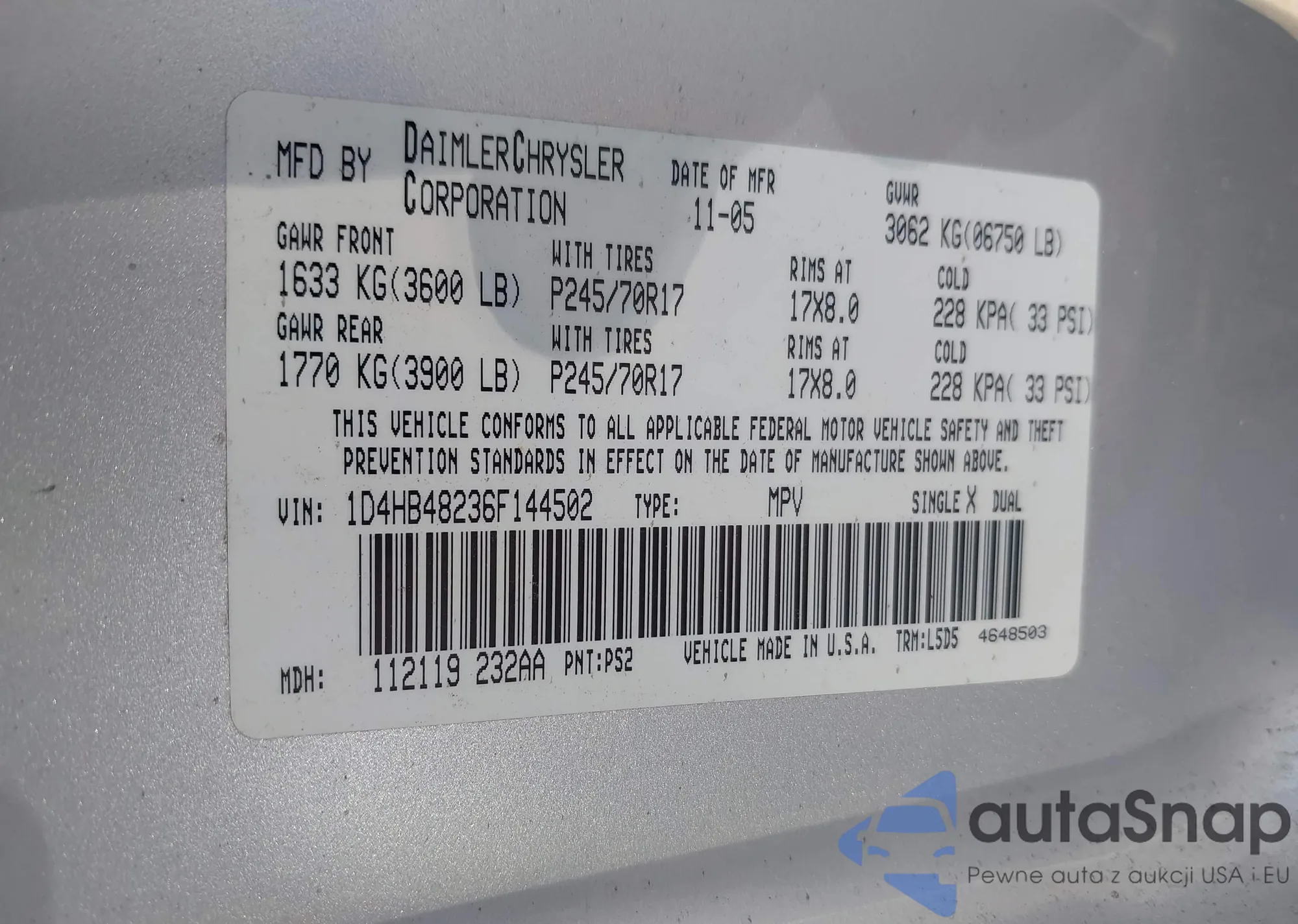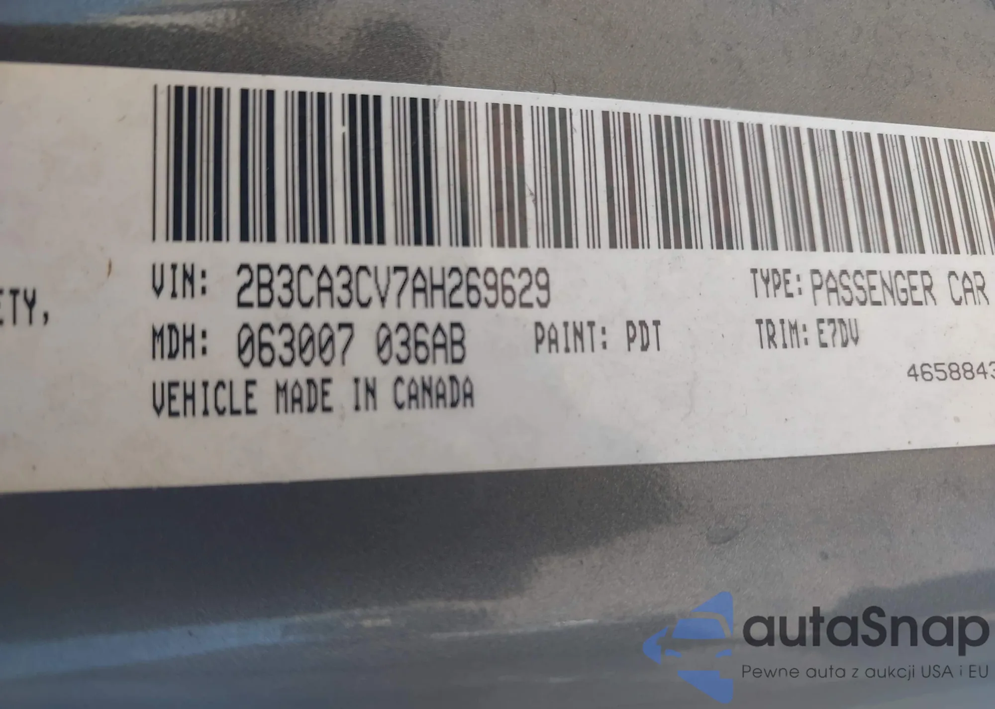 • VIN 2B3CA3CV7AH269629