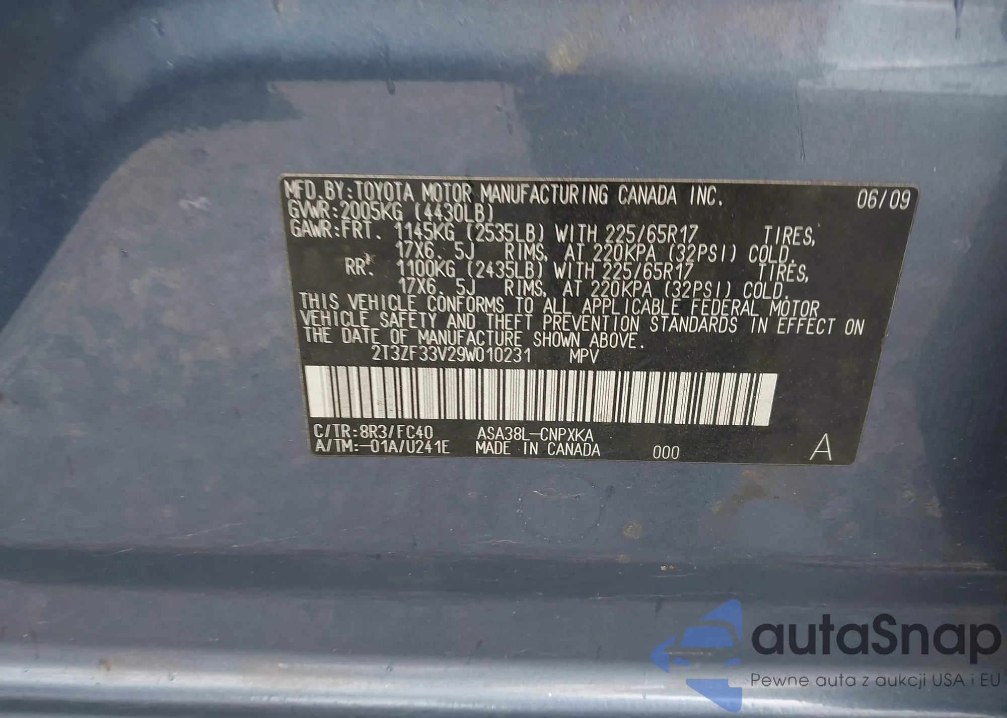 • VIN 2T3ZF33V29W010231