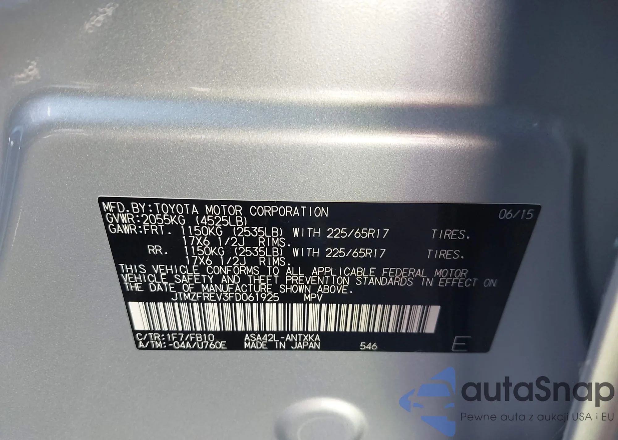 • VIN JTMZFREV3FD061925