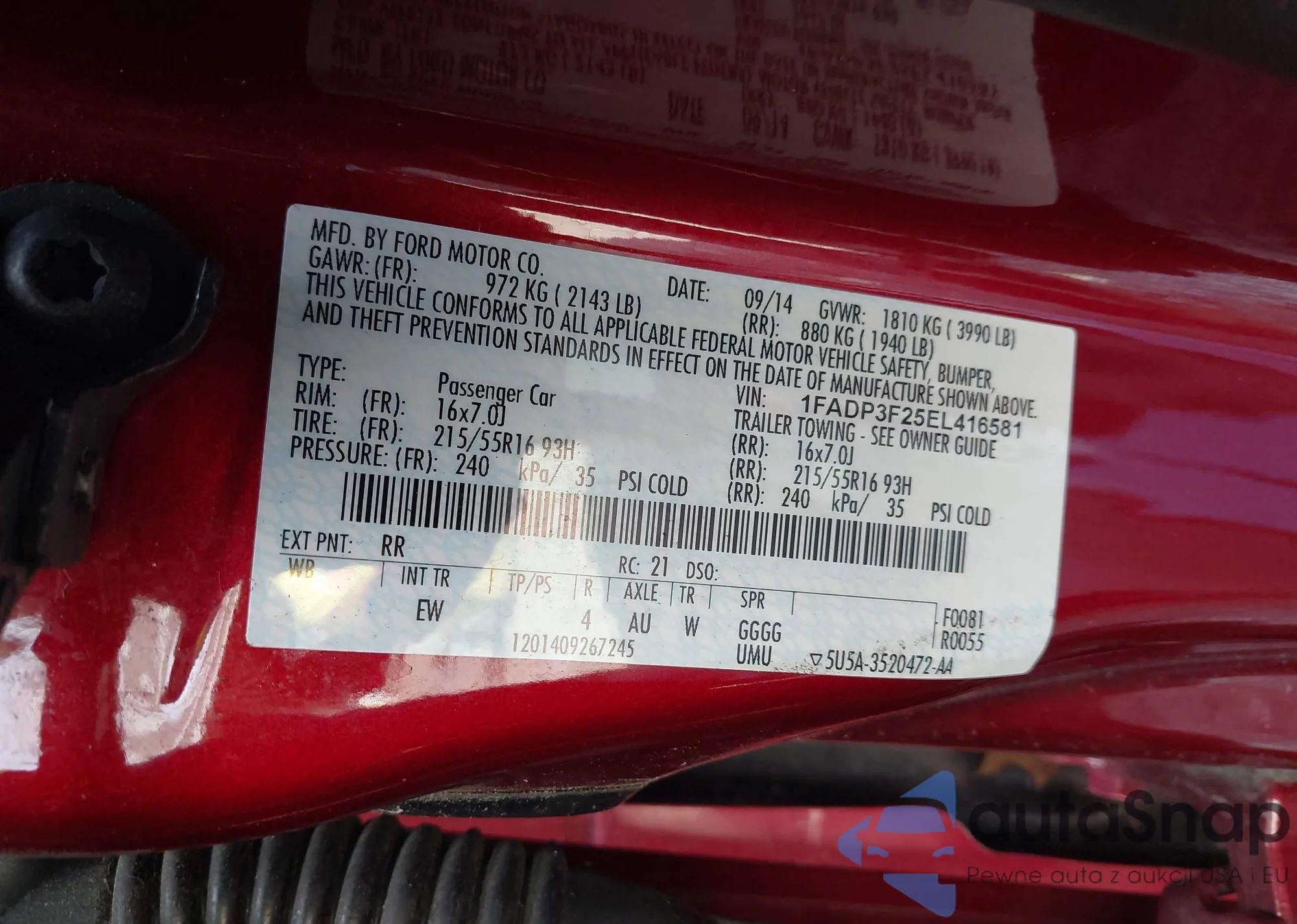 LOT: 43314363 VIN: 1FADP3F25EL416581