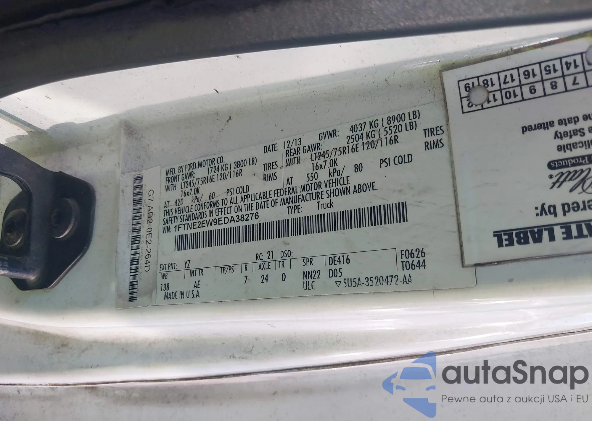 • VIN 1FTNE2EW9EDA38276