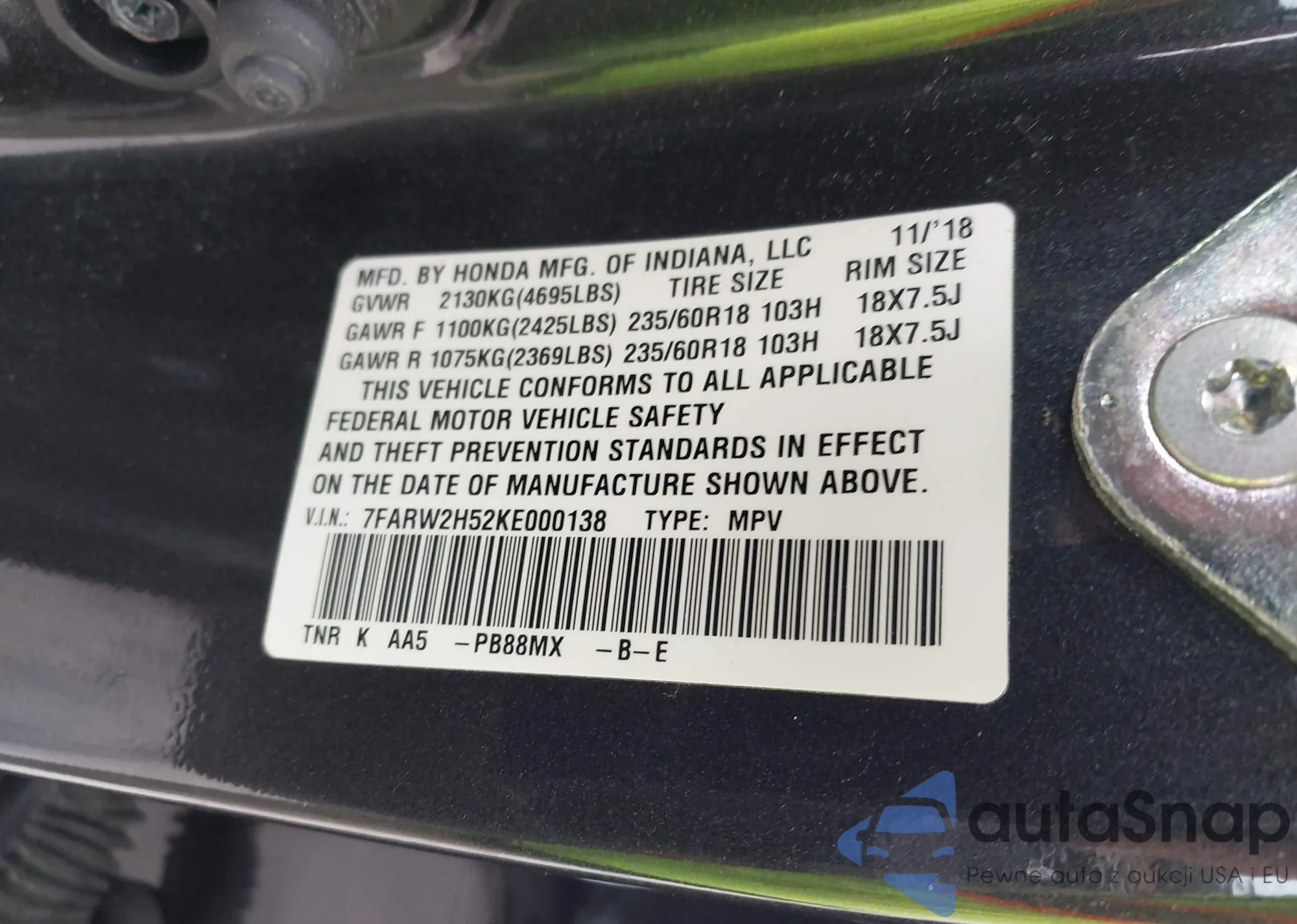 LOT: 43171457 VIN: 7FARS6H97PE010855