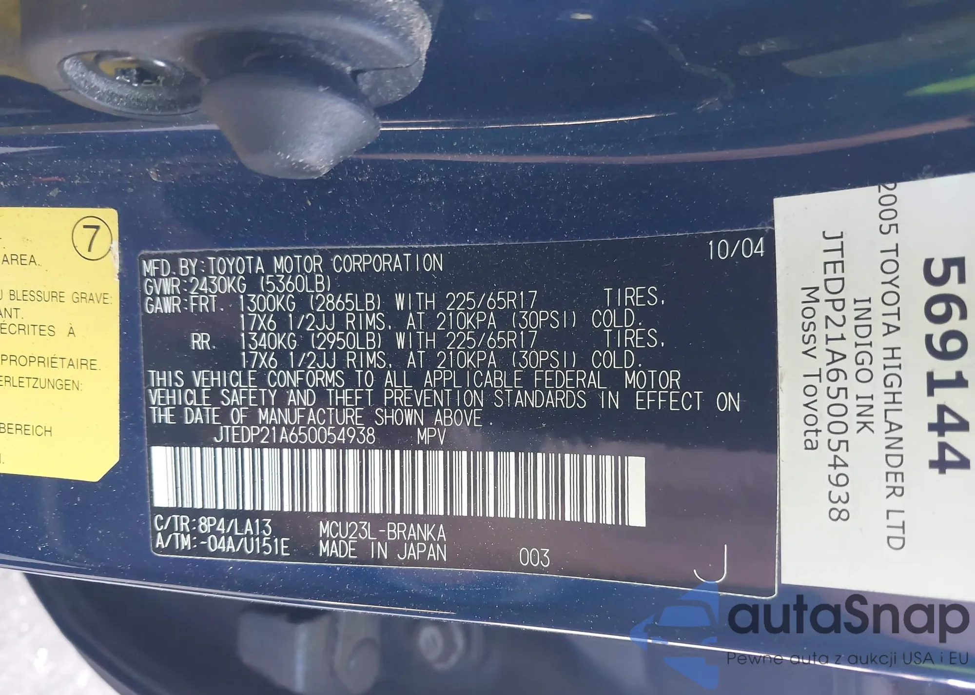 • VIN 7FARS6H97PE010855