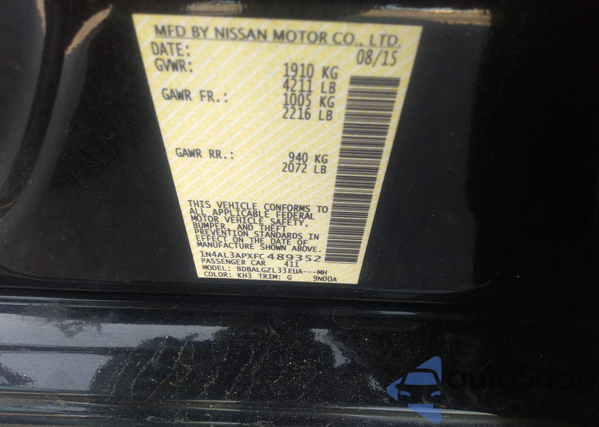 • VIN 1N4BL4BV8KC202141