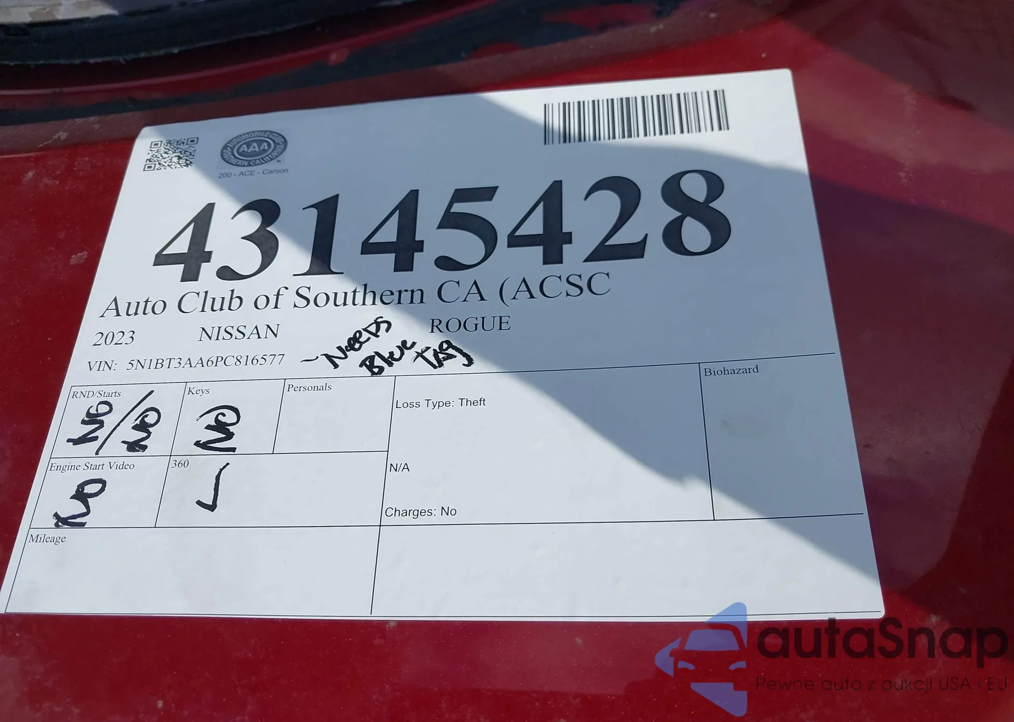 LOT: 43145428 VIN: 5N1BT3AA6PC816577