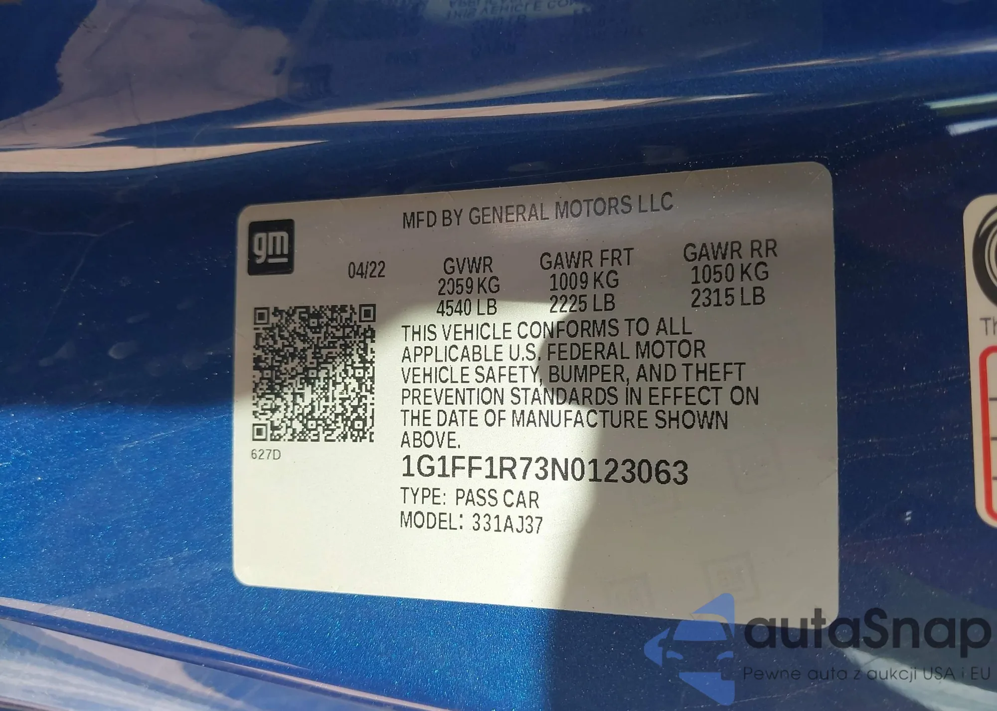 • VIN 1G1FF1R73N0123063
