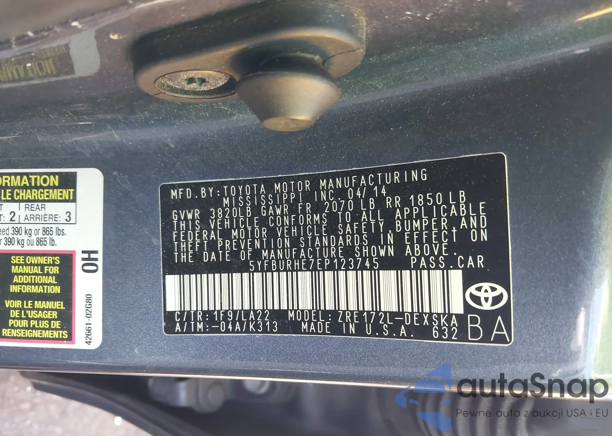 LOT: 43057054 VIN: JTDKB20U983429620