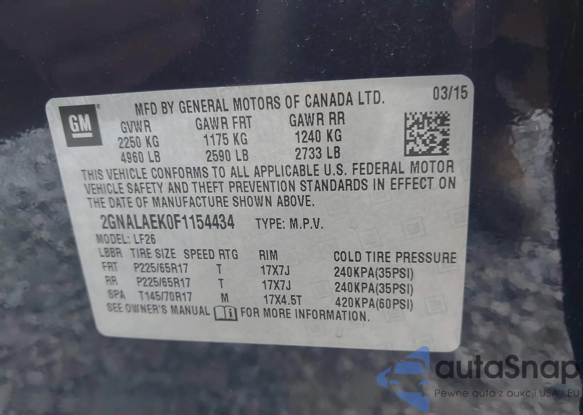 LOT: 42560081 VIN: 2GNALAEK0F1154434