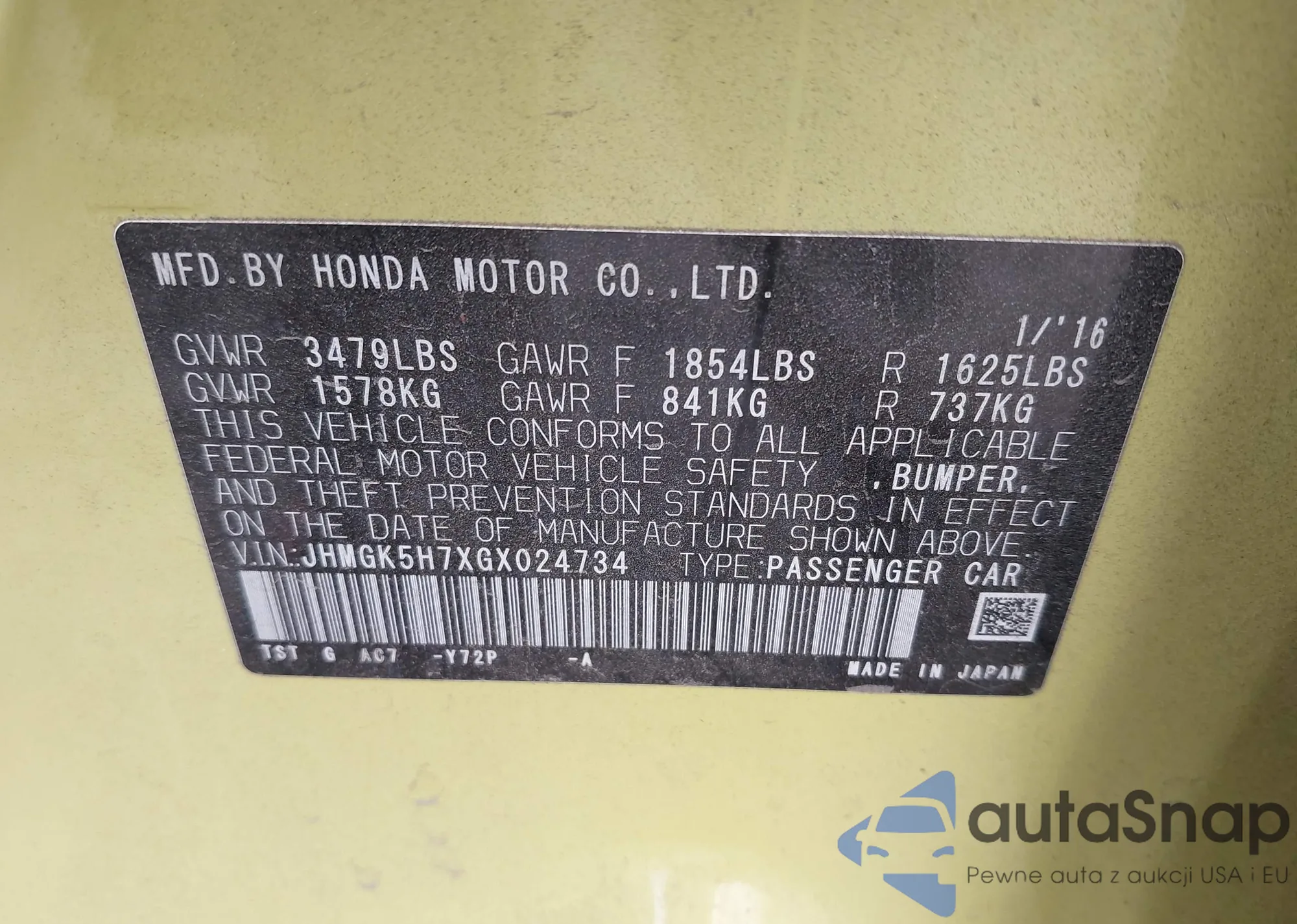 • VIN JHMGK5H7XGX024734