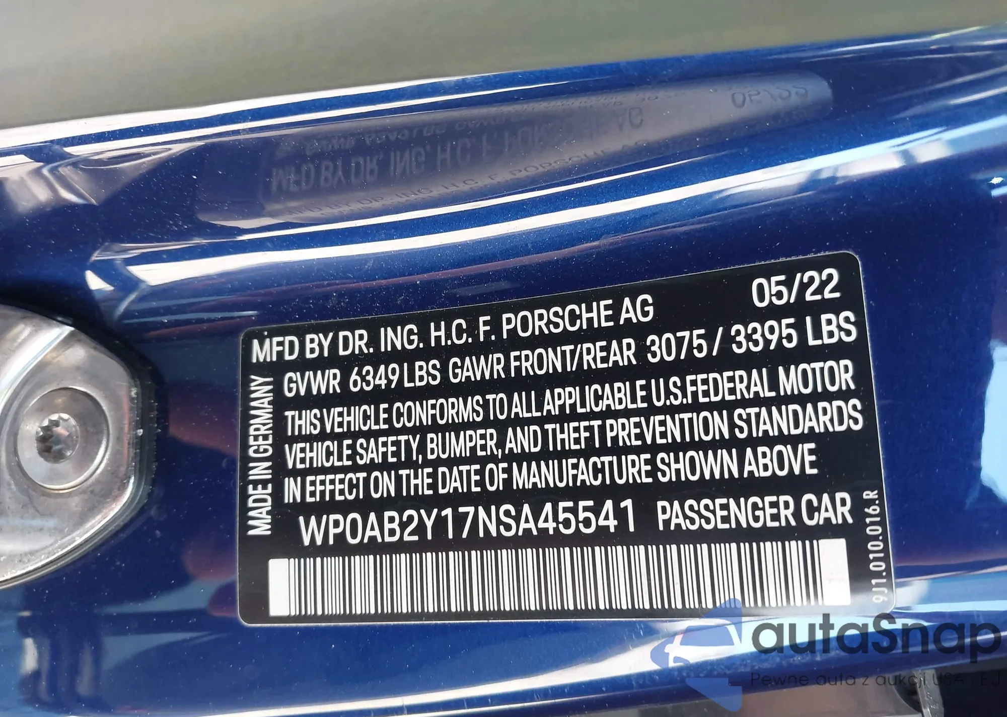 LOT: 43590245 VIN: WP0AB2Y17NSA45541