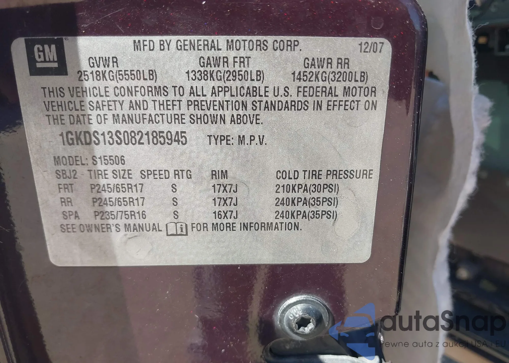 • VIN 1GKDS13S082185945