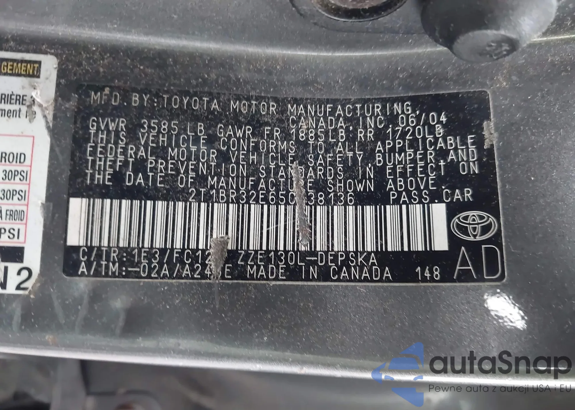 • VIN 2T1BR32E65C338136