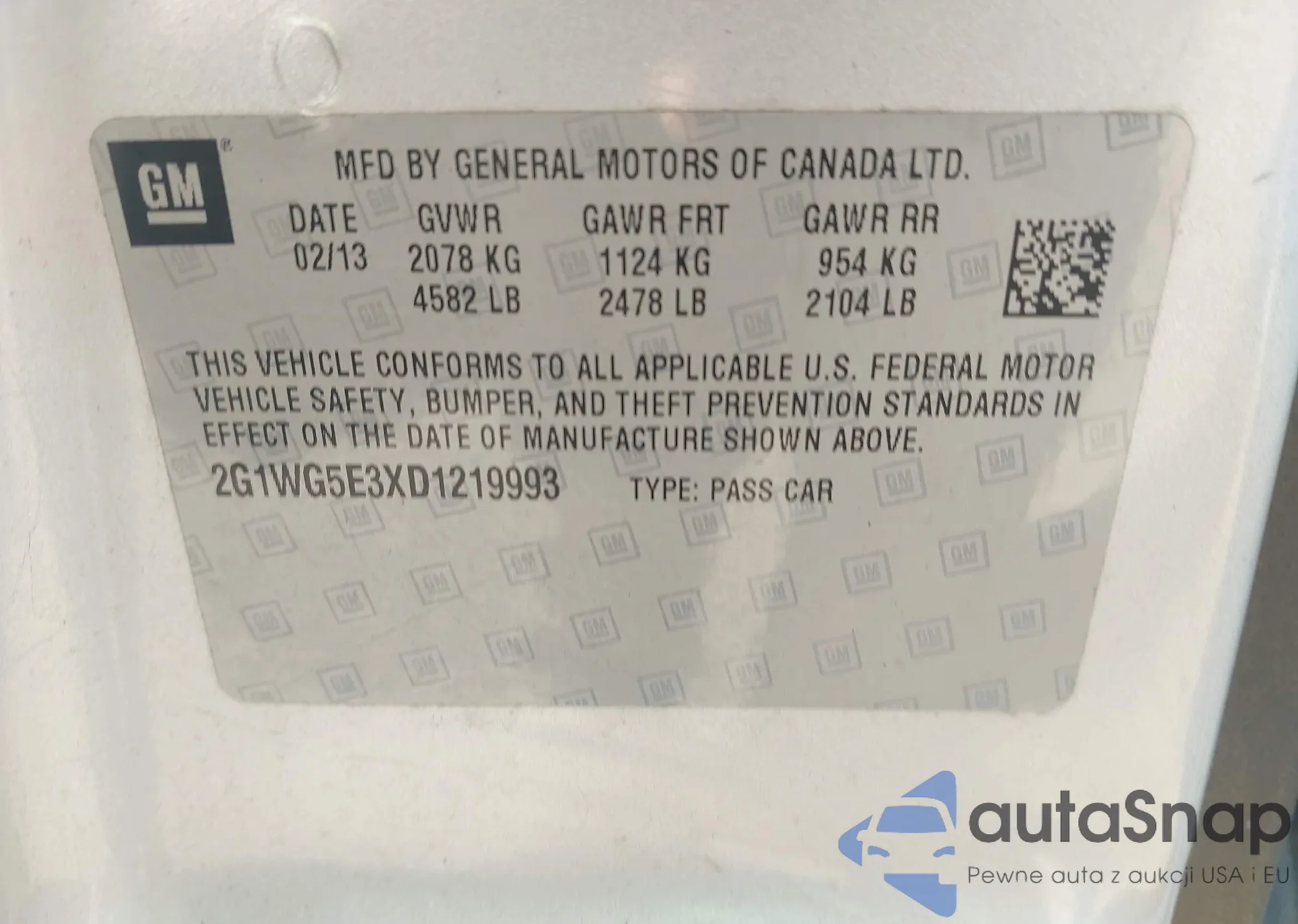 LOT: 43600377 VIN: KNAGM4A71D5381045