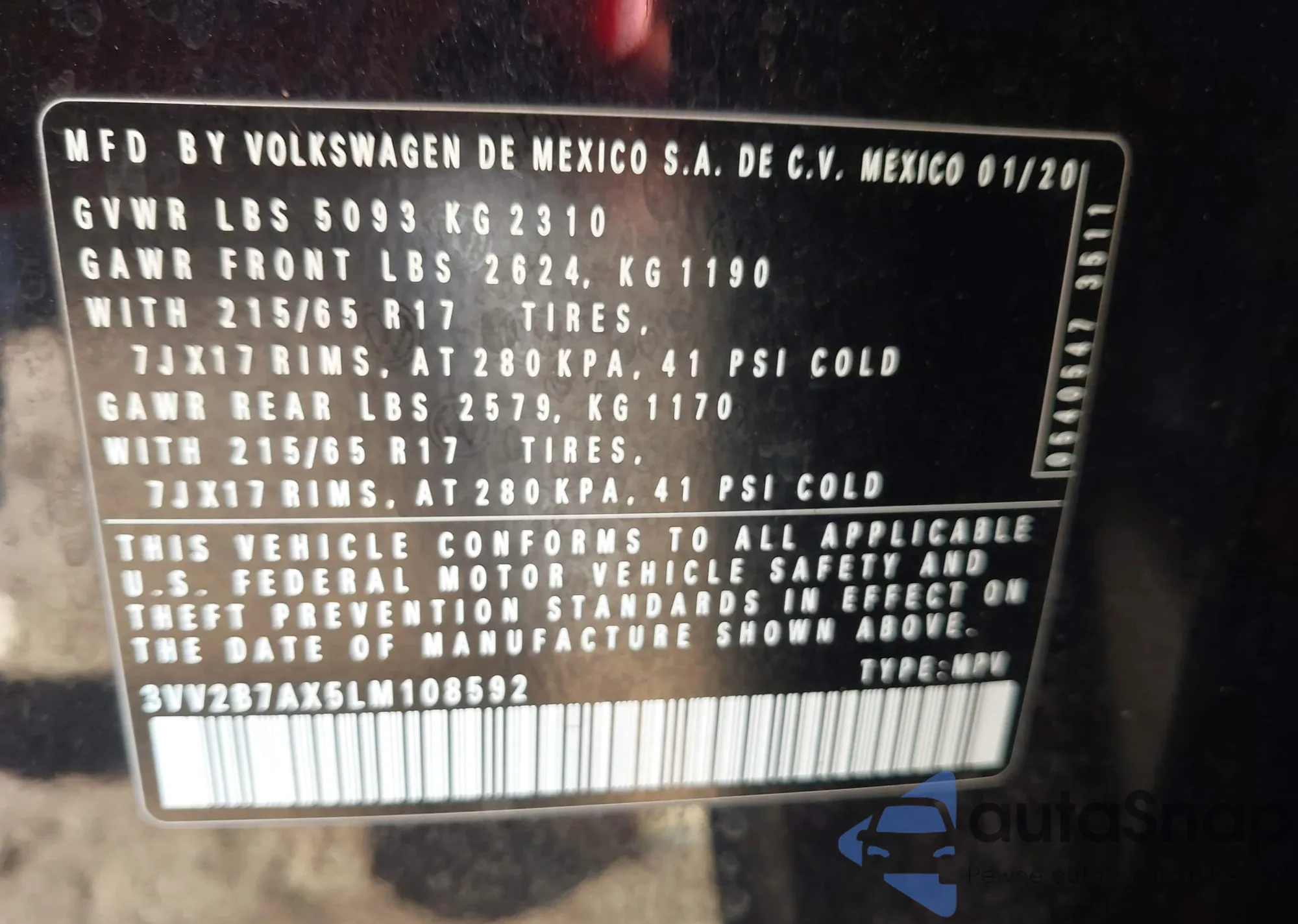 • VIN 3VV2B7AX5LM108592