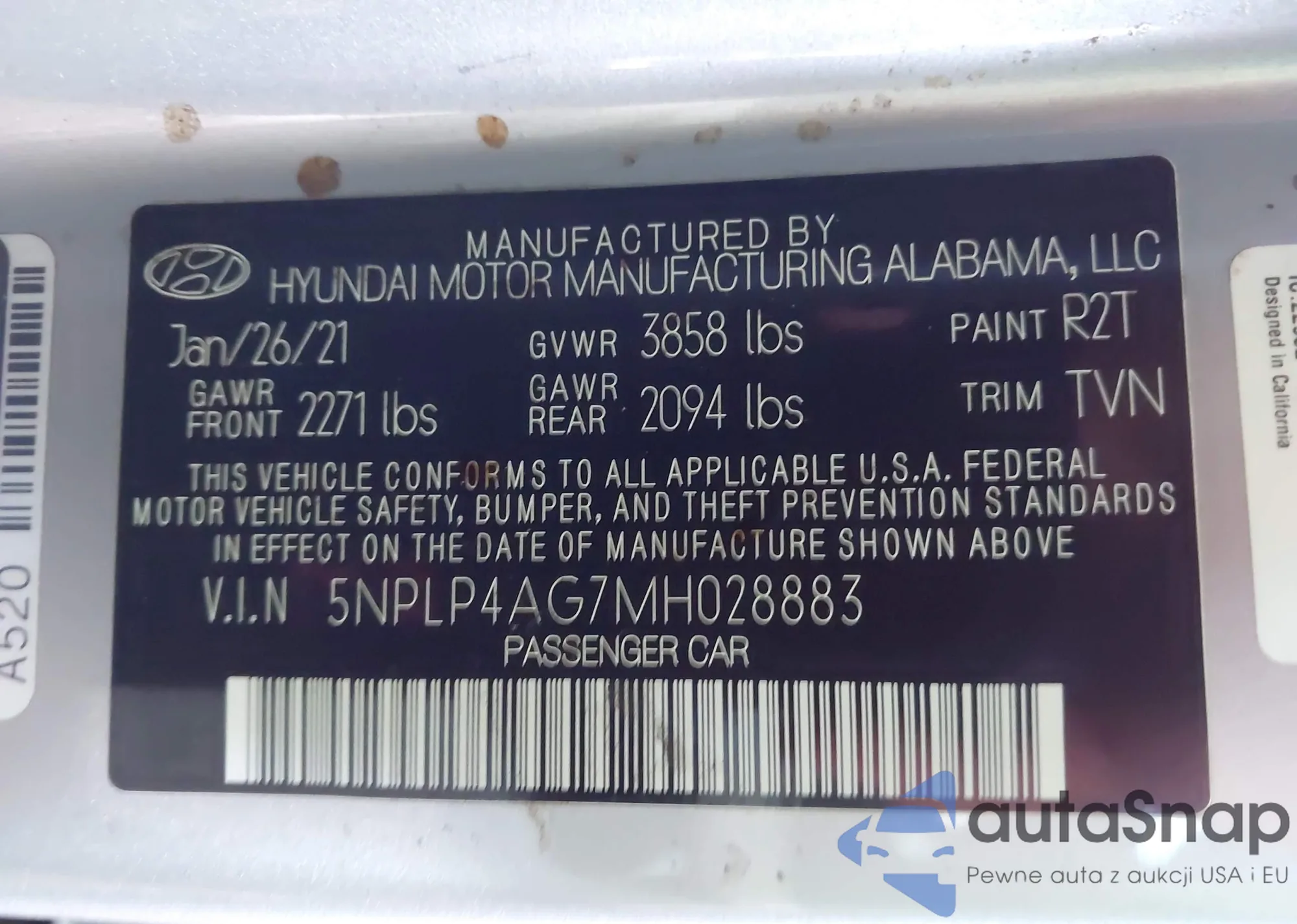 • VIN 5NPLP4AG7MH028883