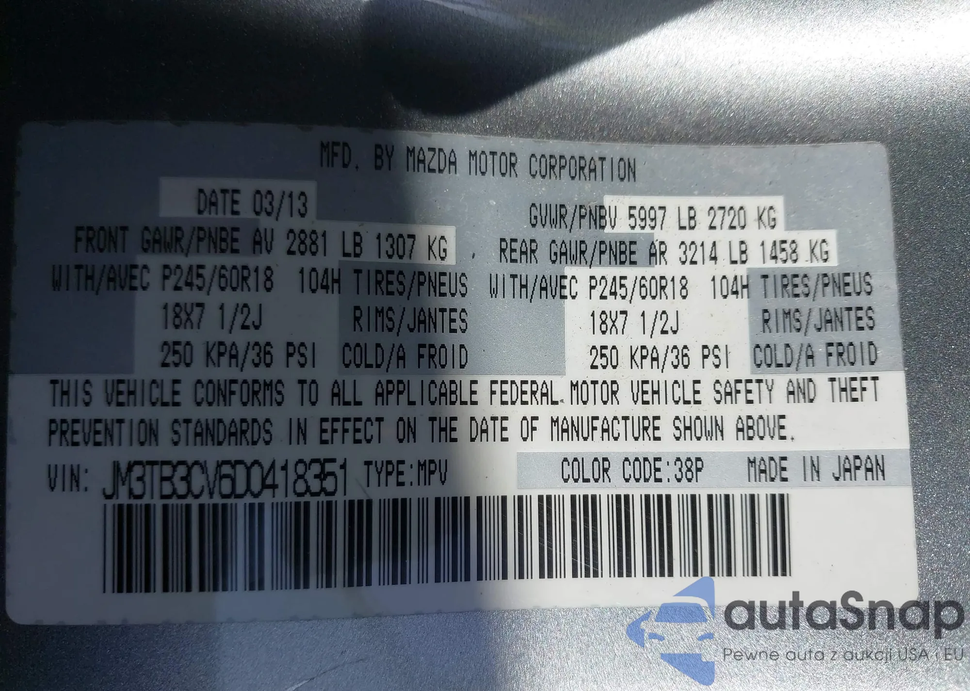• VIN JM3TB3CV6D0418351