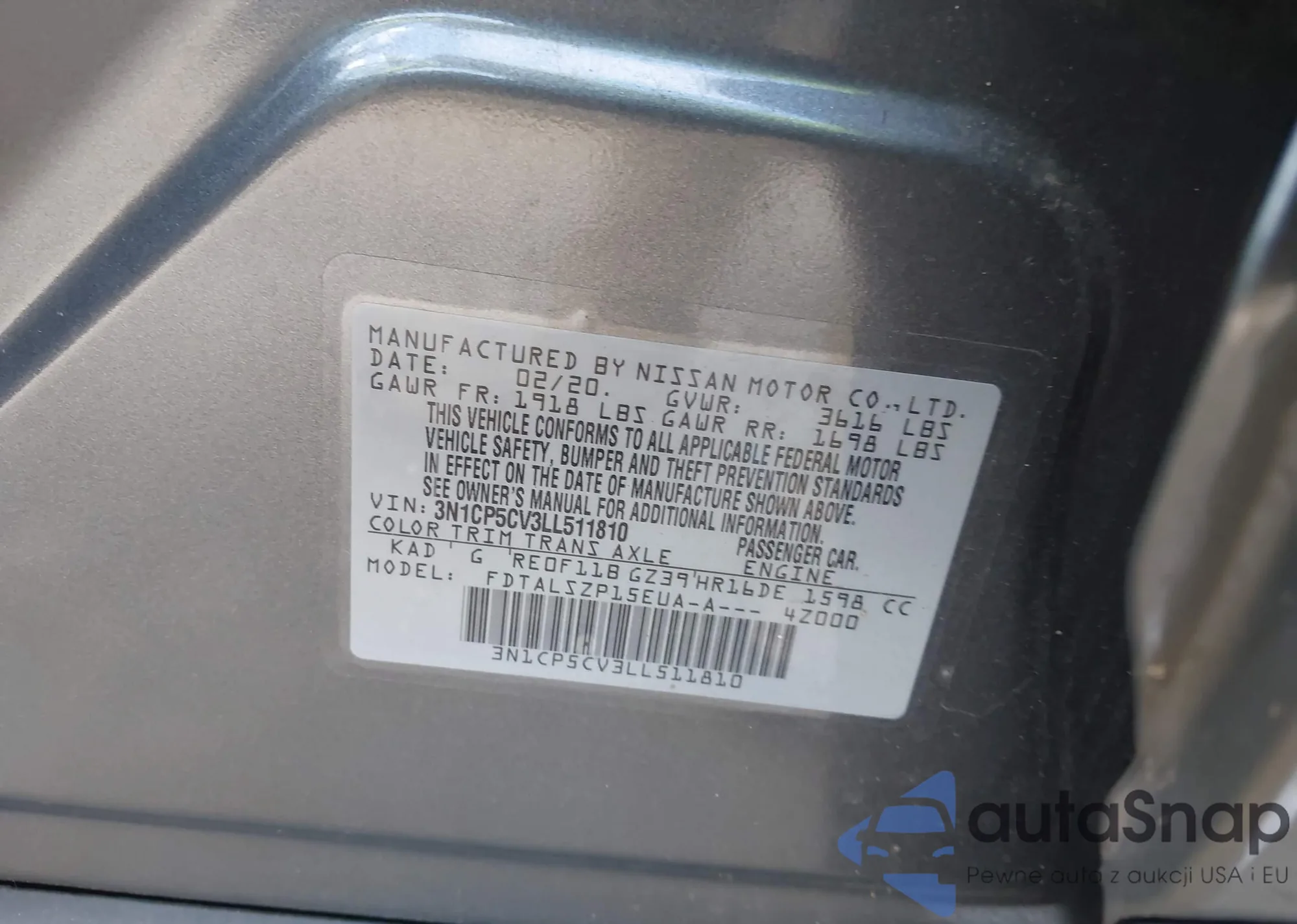 LOT: 43624278 VIN: 3N1CP5CV3LL511810