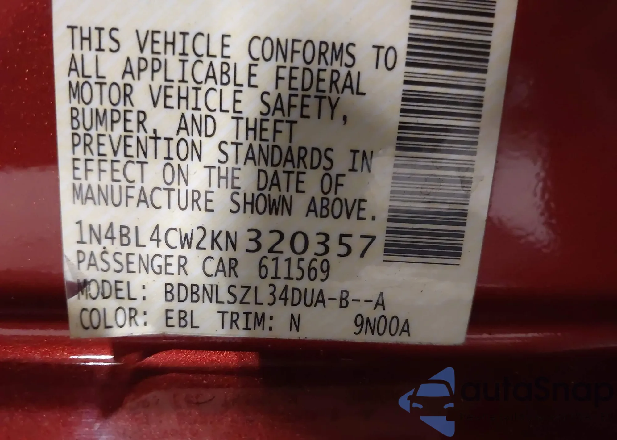 • VIN 1N4BL4CW2KN320357