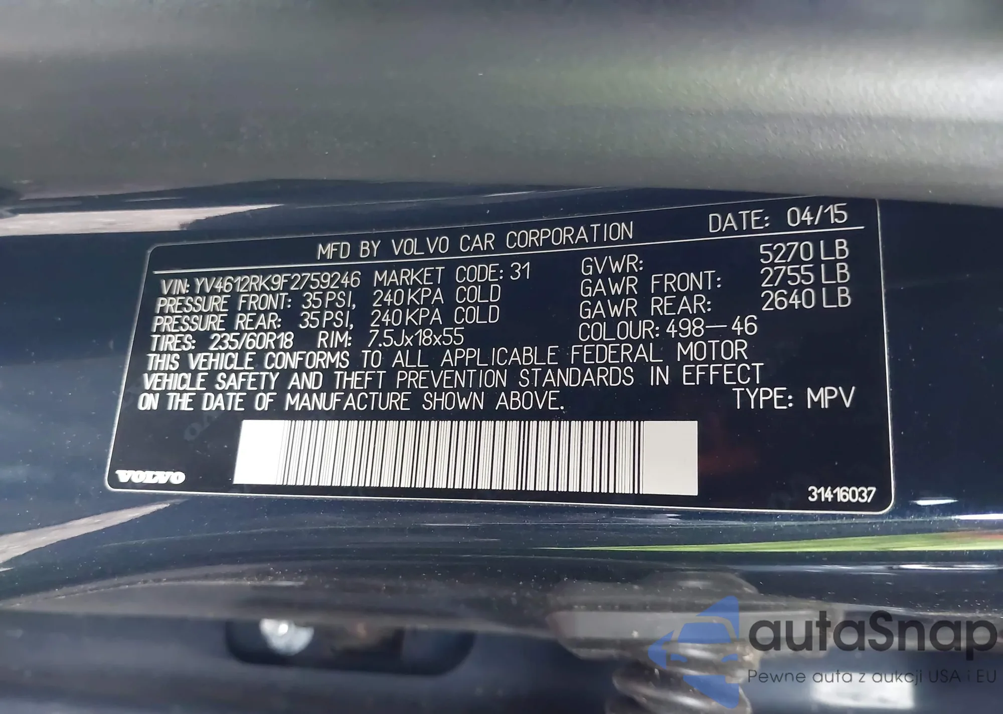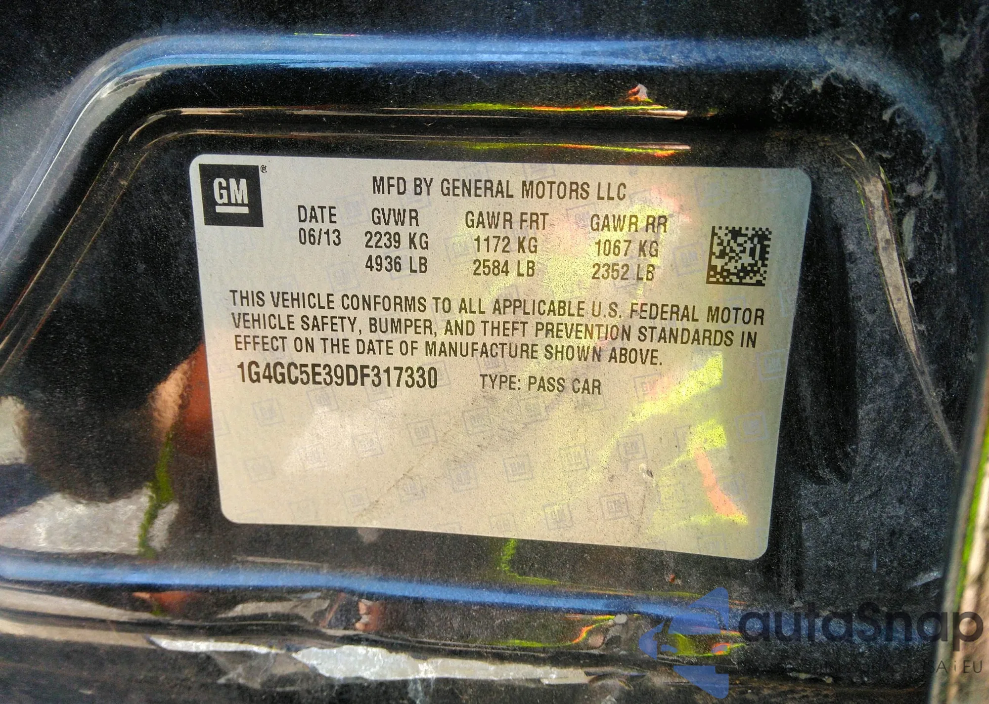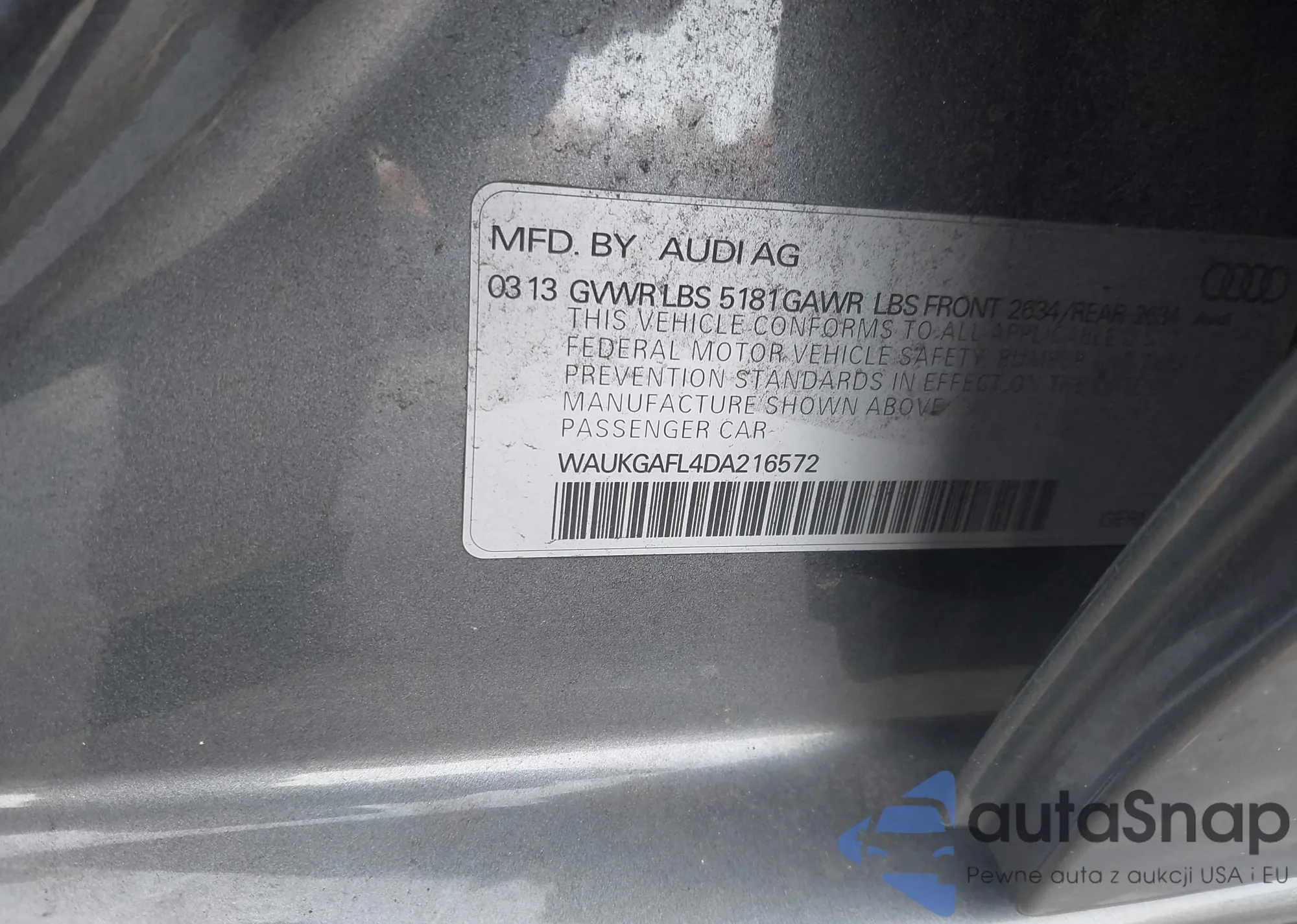 • VIN WAUKGAFL4DA216572