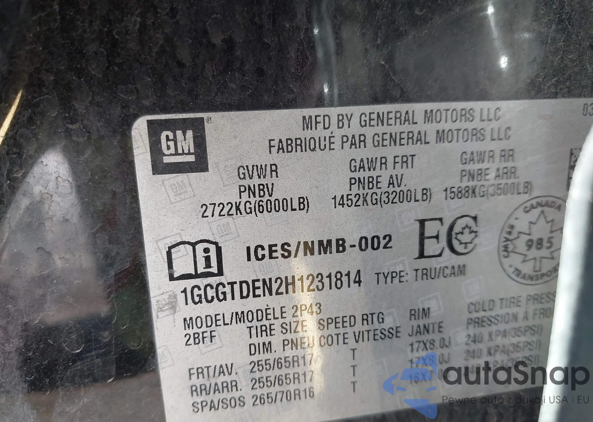 • VIN 1G4GC5E39DF317330