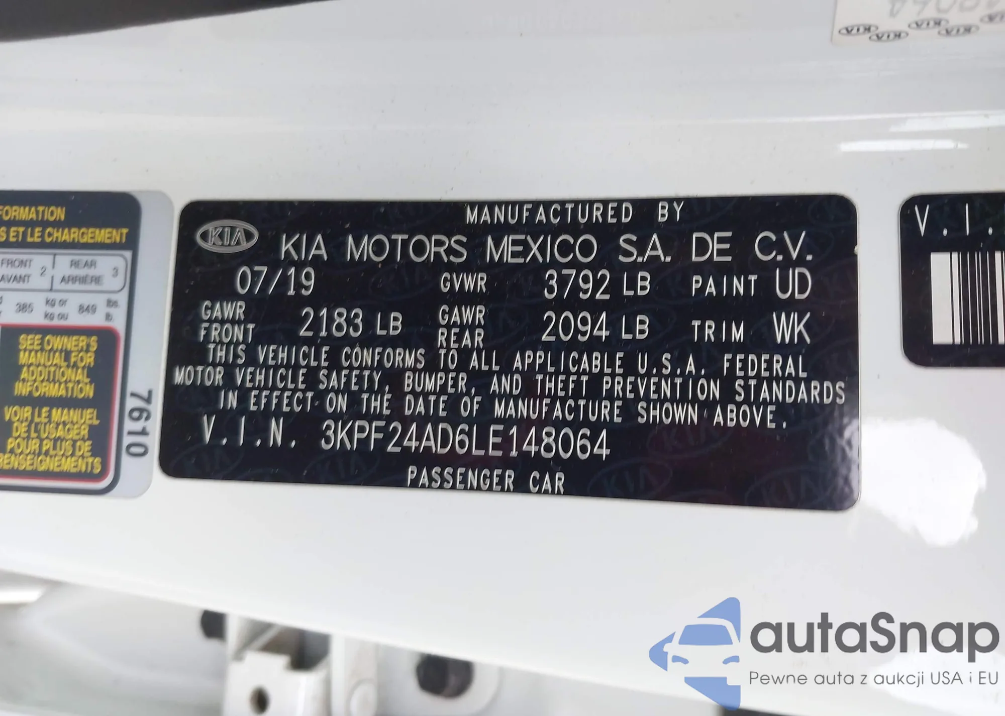 • VIN 3KPF24AD6LE148064