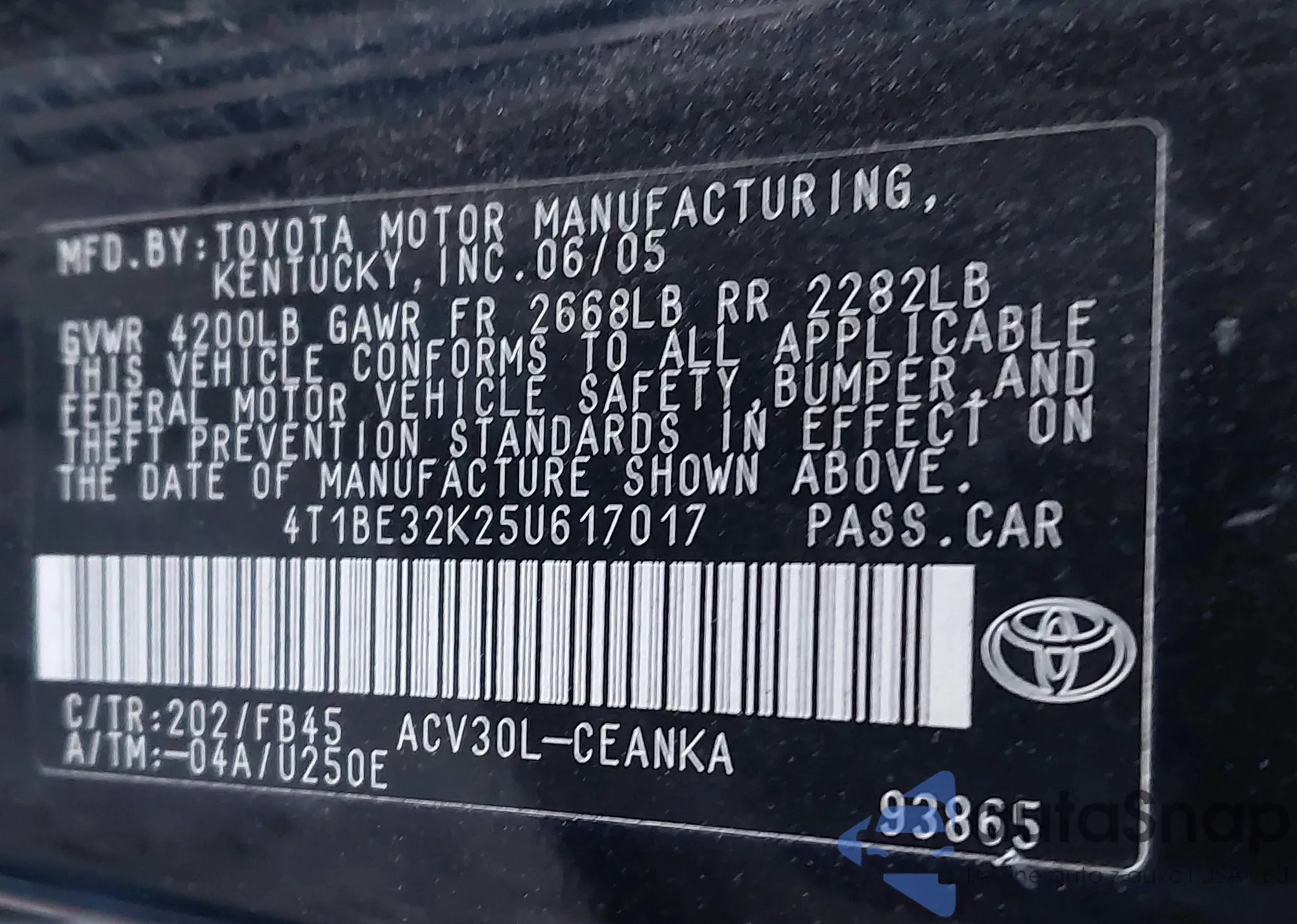 • VIN 4T1BE32K25U617017