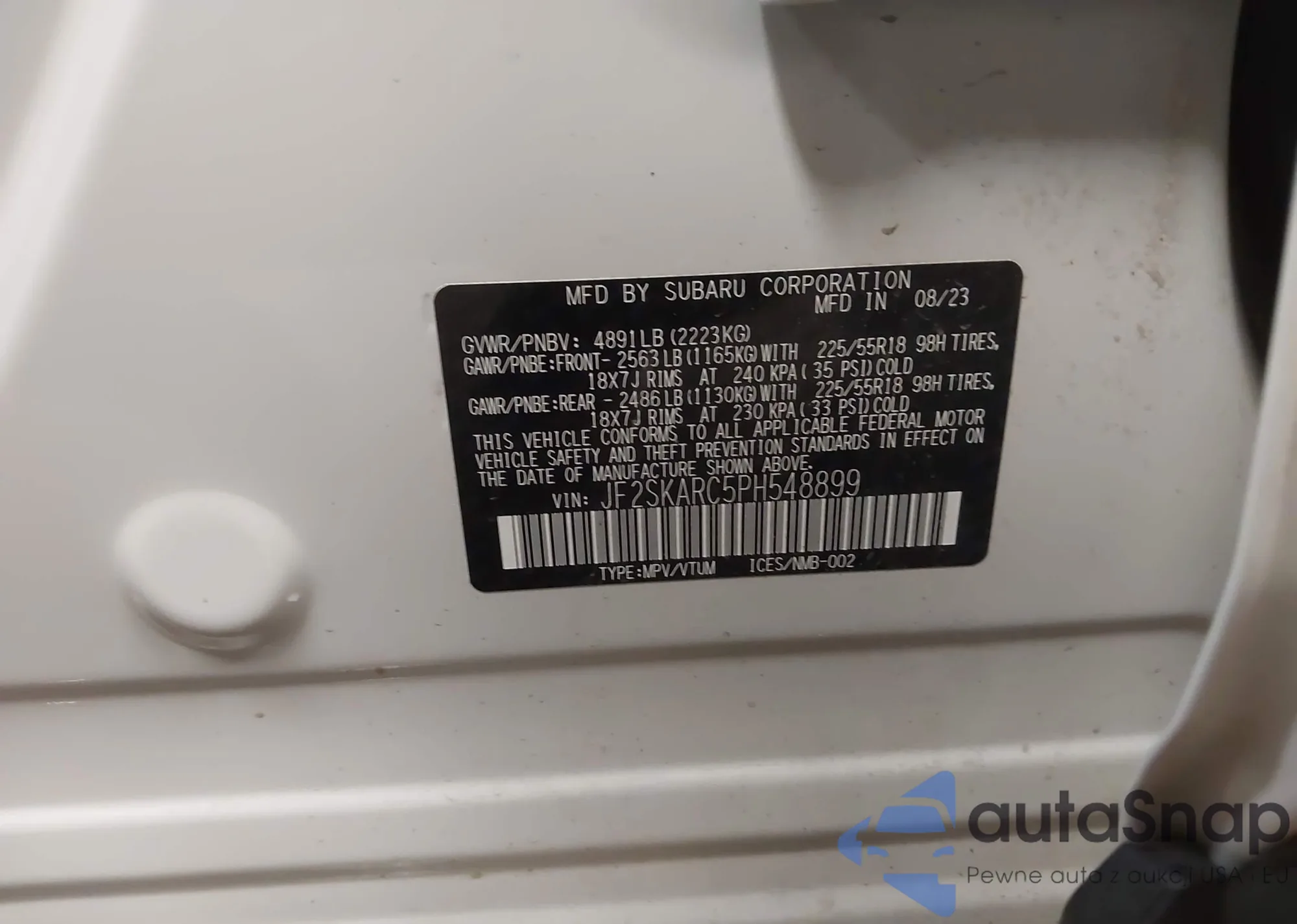 LOT: 43170132 VIN: JF2SKARC5PH548899