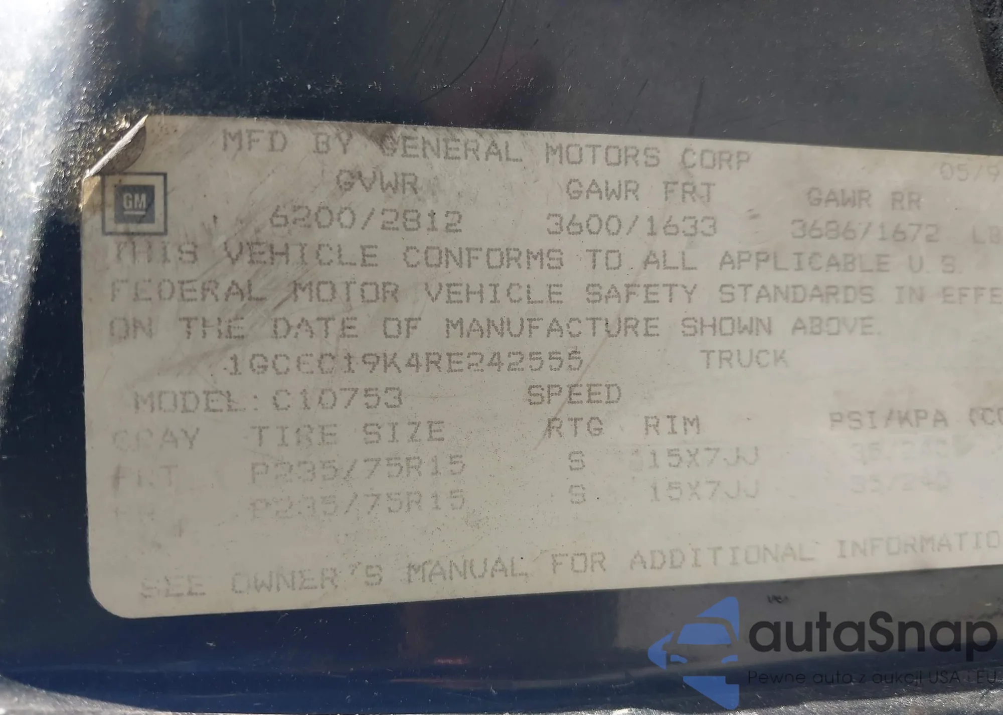 • VIN 1GCEC19K4RE242555