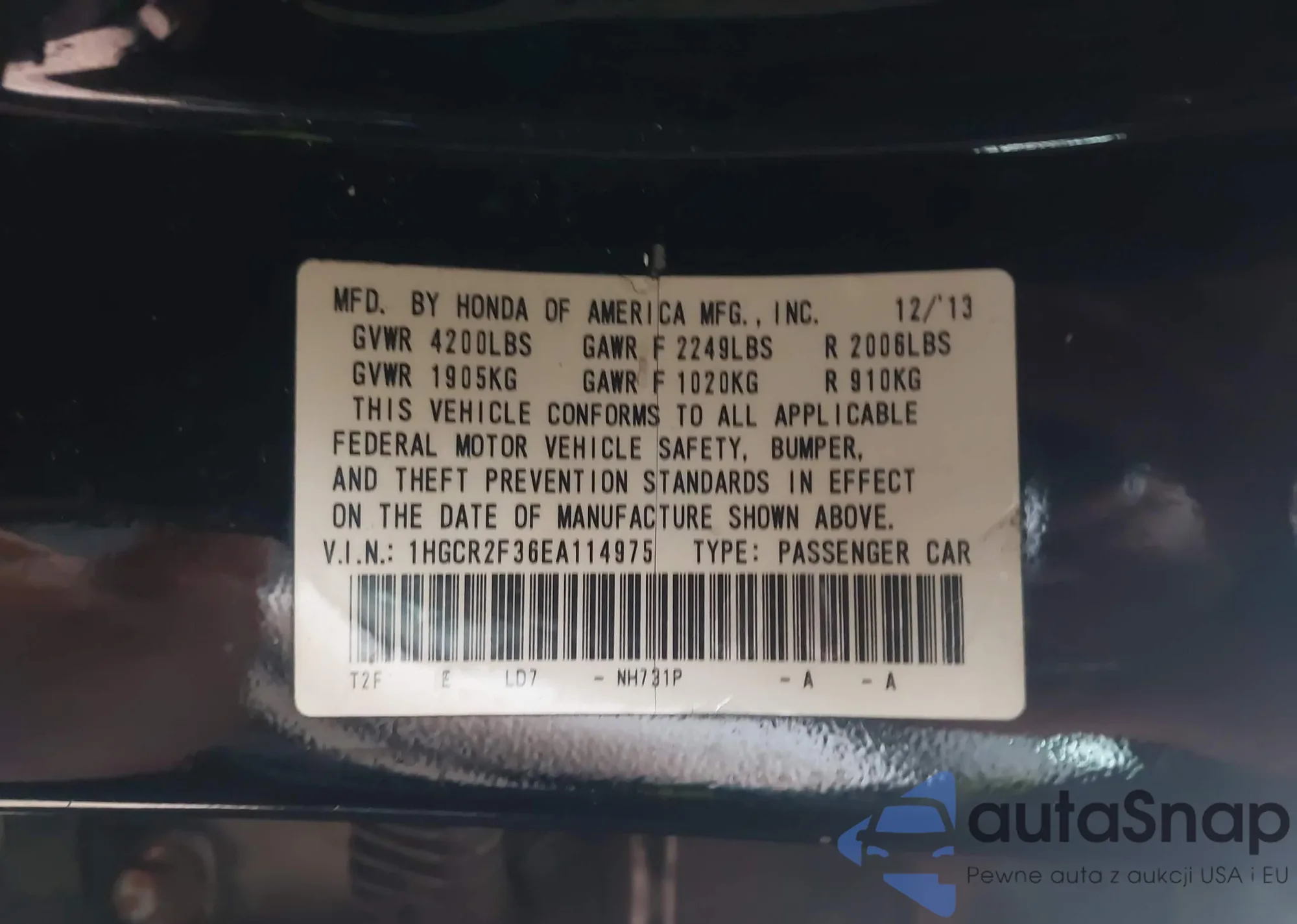• VIN 5FNRL5H92CB028533