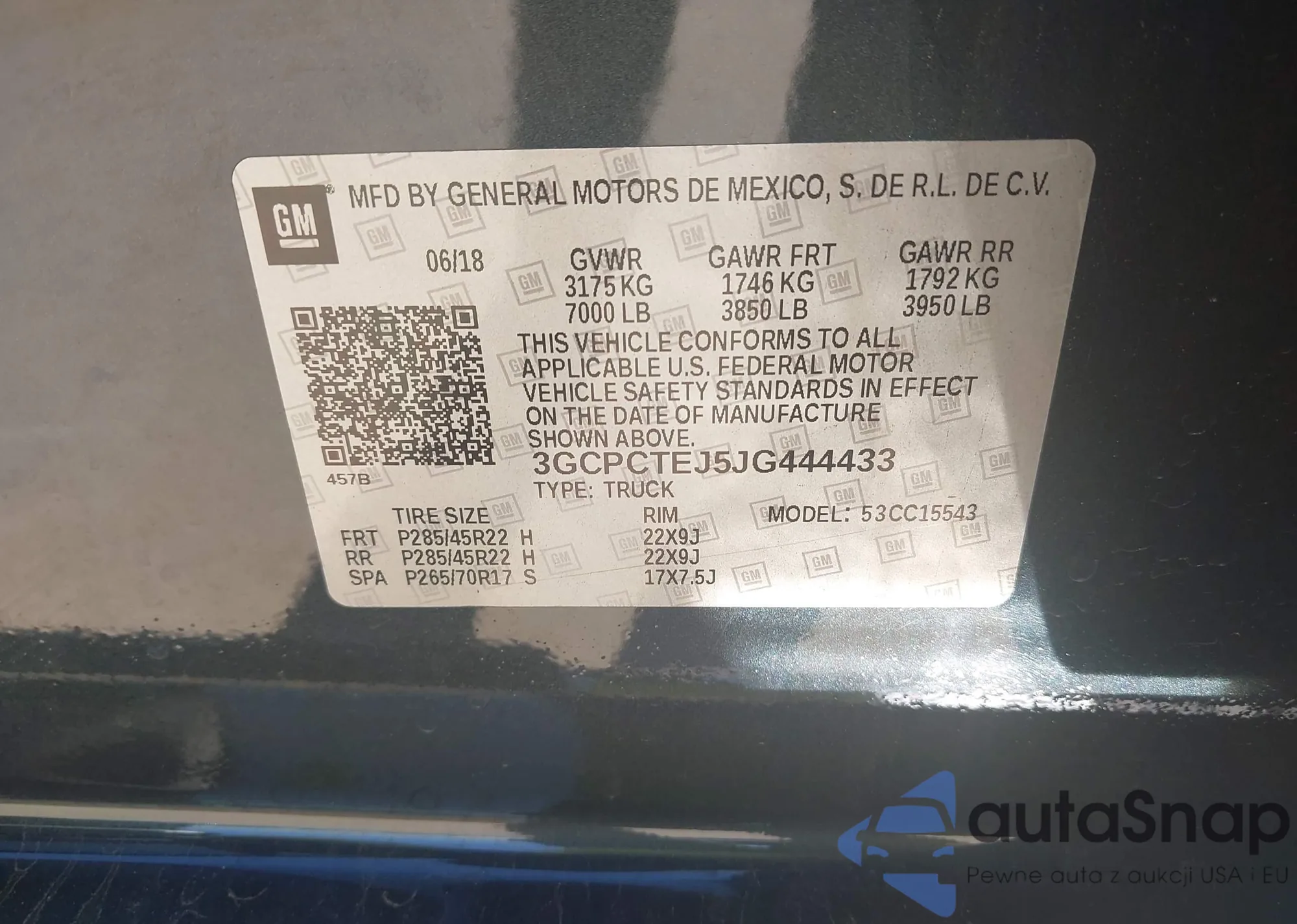 LOT: 43270507 VIN: 1FTRW07L83KD24716