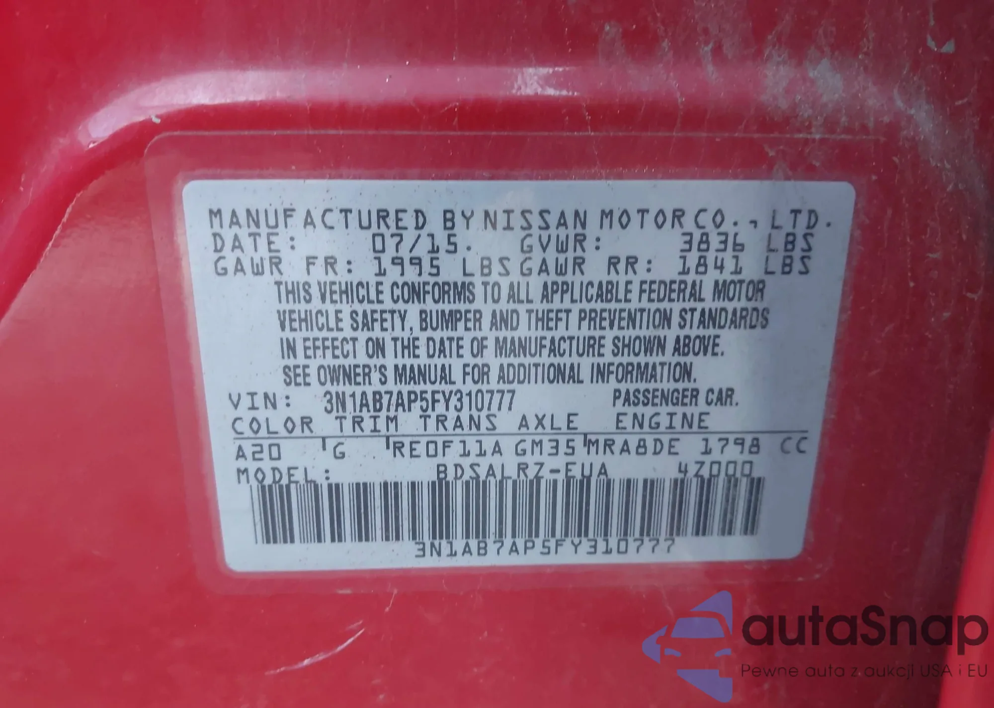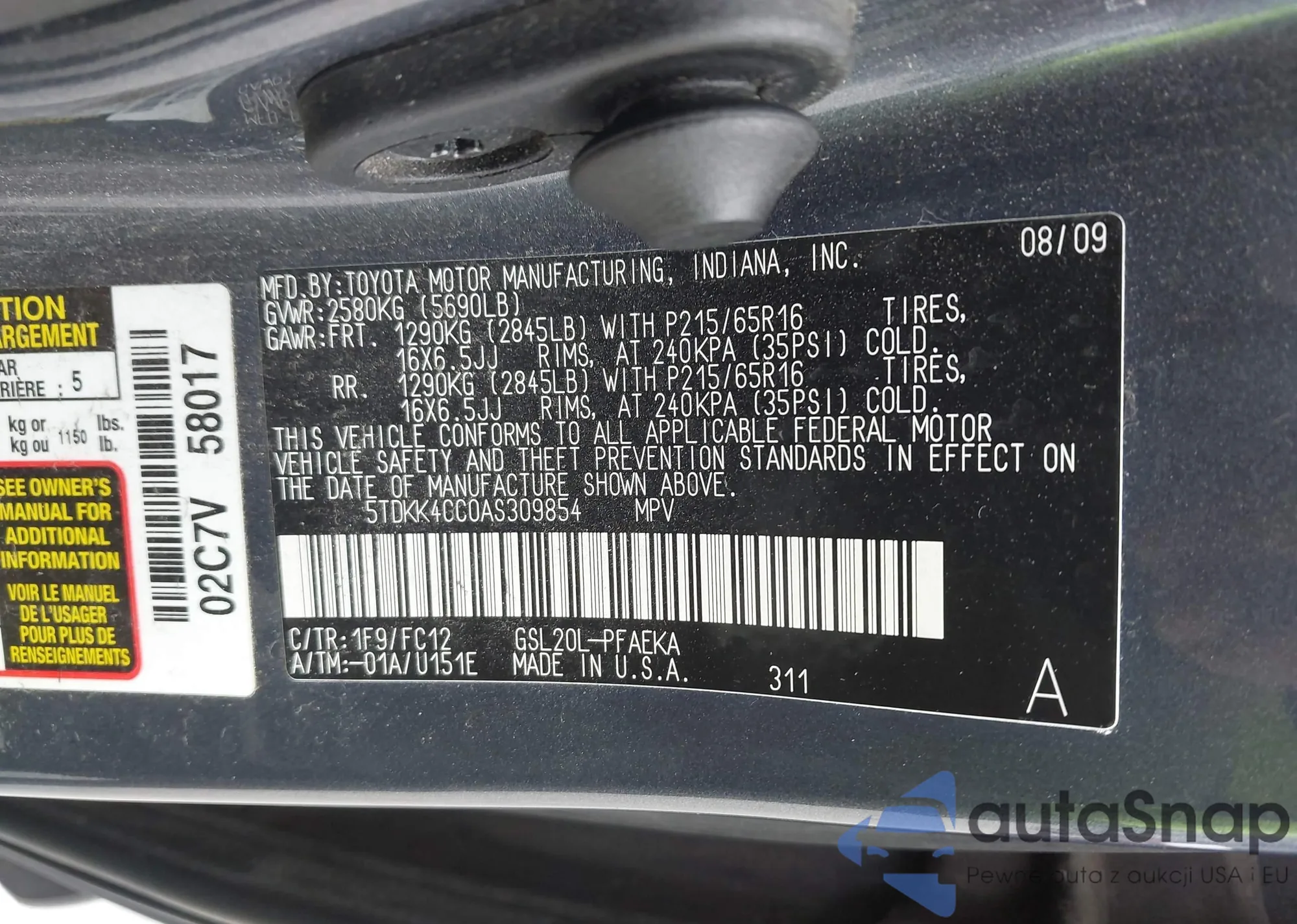 • VIN 7MUCAAAG9SV120848