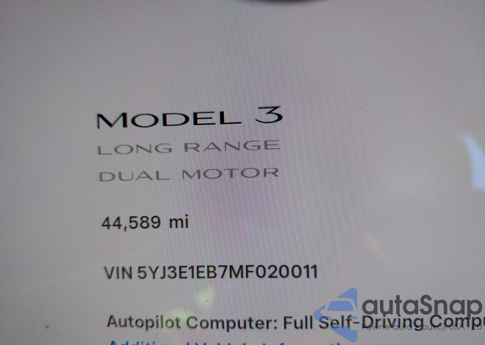 LOT: 43258358 VIN: 5YJ3E1EB7MF020011