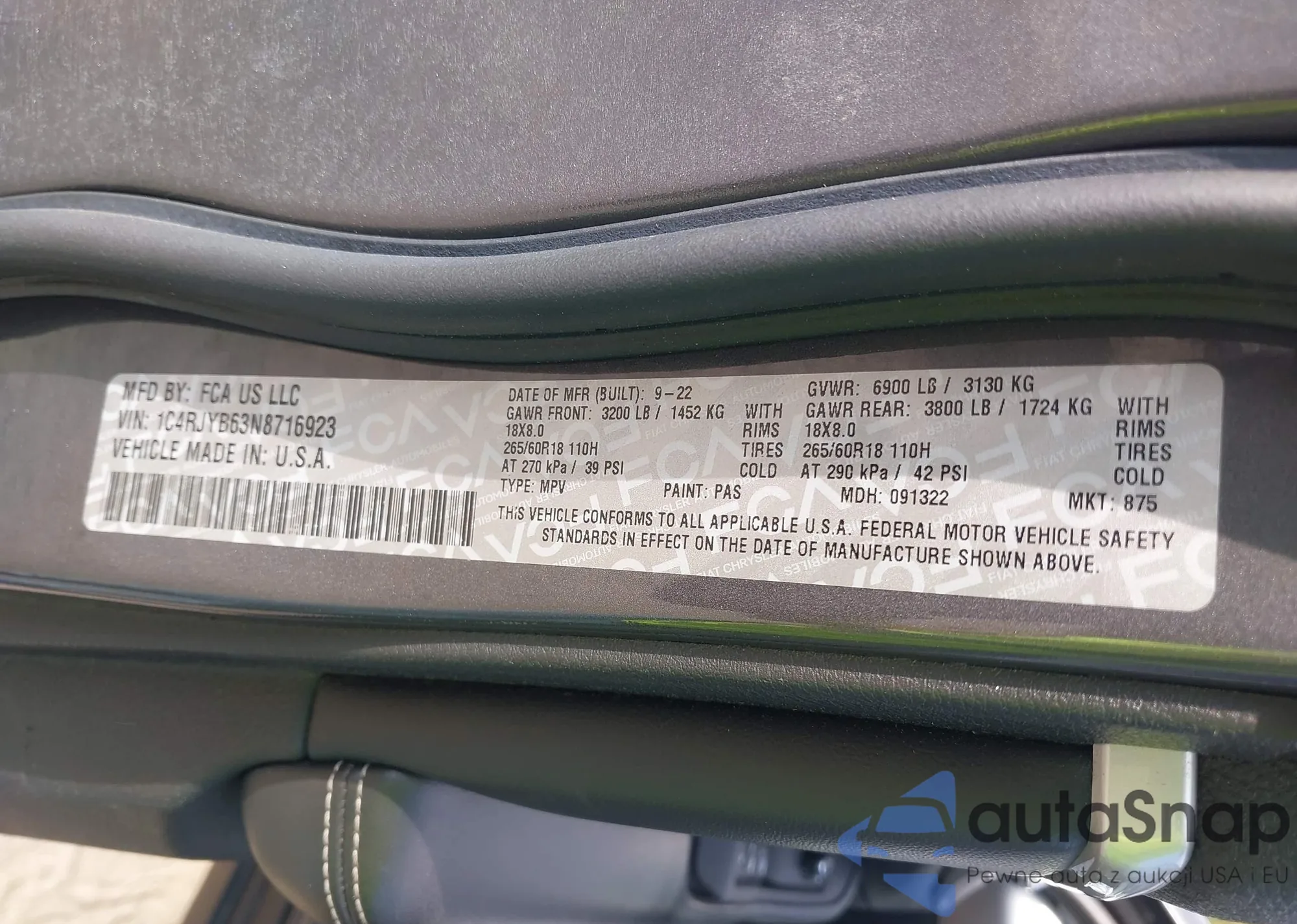 • VIN 1C4RJYB63N8716923