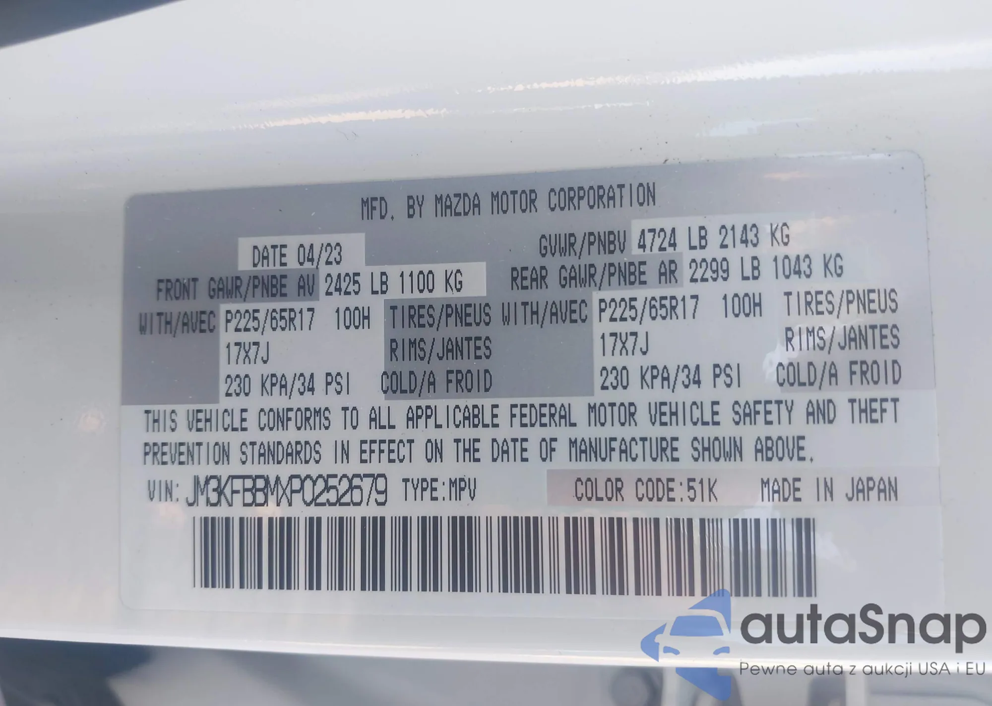 • VIN JM3KFBBMXP0252679