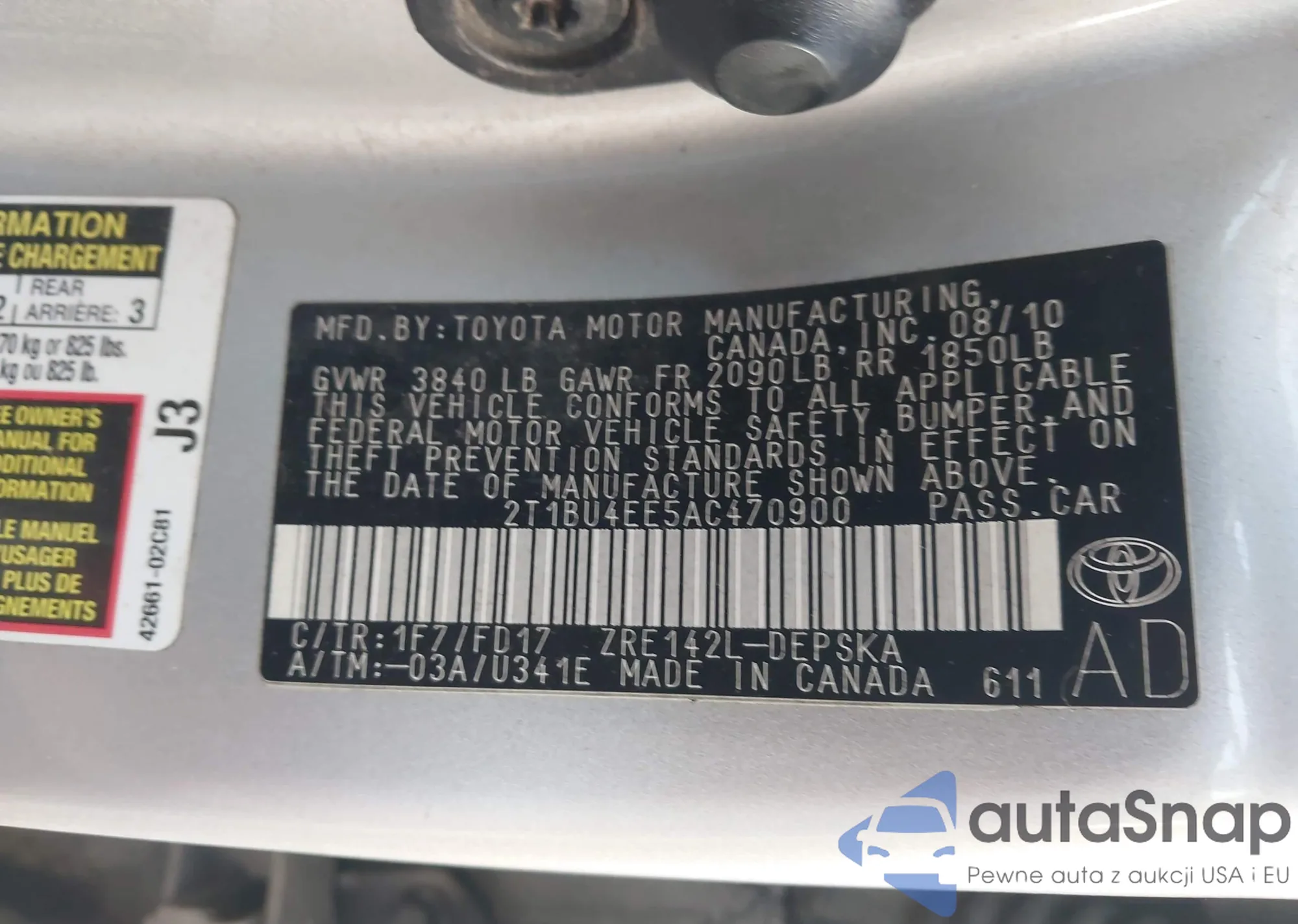 • VIN 2T1BU4EE5AC470900
