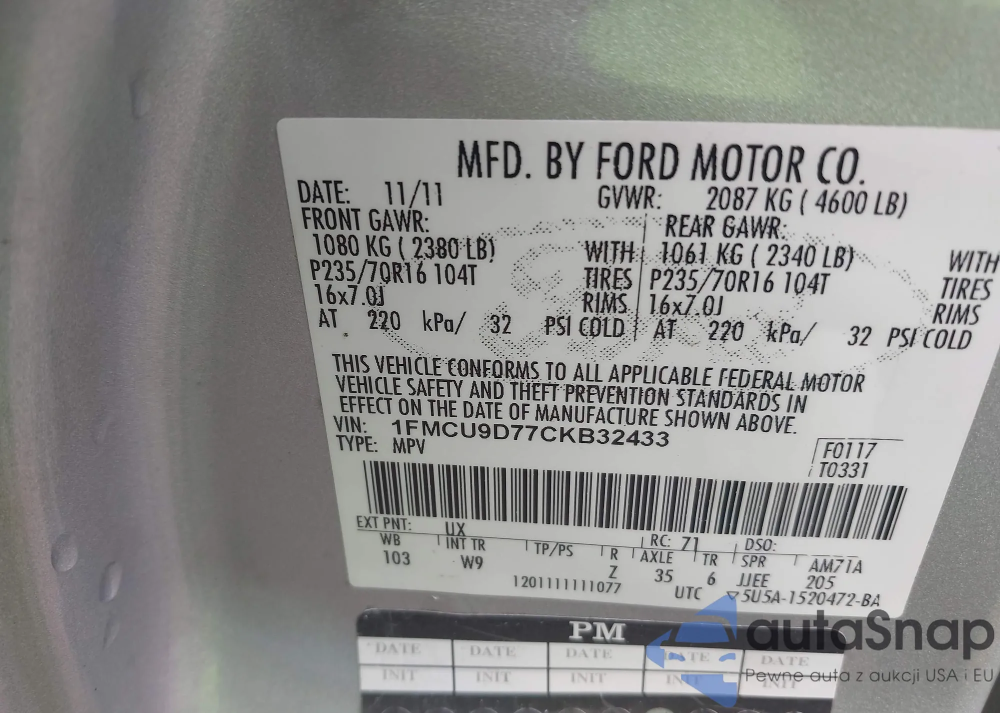 • VIN 1FTYR1DM5HKA30333