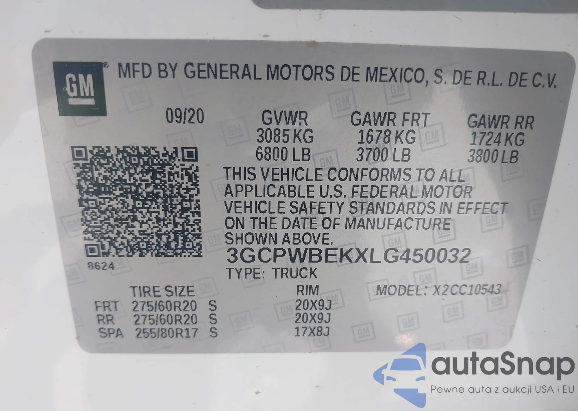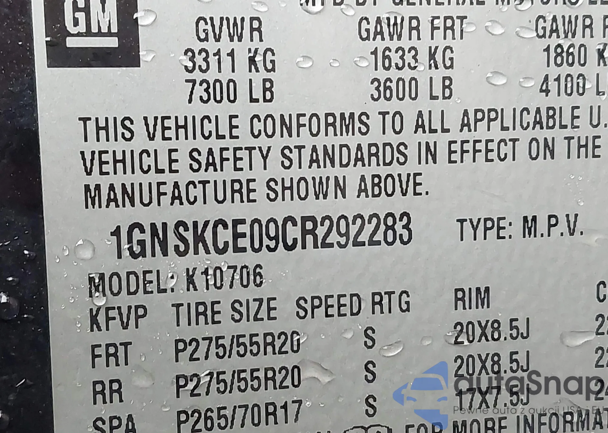 LOT: 43481406 VIN: 1GCWGFCA2D1142282